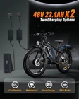 S1 Full Suspension Description 【Dual Motor Electric Bikes for Adults】 TWO upgraded 48V / 52V 1000W high speed Front & Rear brushless motors provide electric bicycles with stronger power and climbing ability, helps to reach the top speed of 35MPH with ease. Removable large capacity 48V/52V 22.4Ah battery offers a long riding range up to 40-60 miles in pedal assist mode. It takes only 5-8 hours to fully charge the battery 【Big Capacity Lithium Battery Ebike】 Large capacity 48V / 52V 22.4Ah battery offers ebikes long riding range of 40-60 miles,the waterproof battery of ebike is not only large capacity and long lasting, but it's also removable, convenient to take home or office for charging.Upgraded 54.6V 2A charger completes charging quickly in 5-8 hours 【Full Suspension 26" Fat Tire Electric Bike】 Equipped with a dual-crown front suspension fork and rear shock absorber , which greatly reduces bumps during riding. 26" x 4" fat tires also provide good grip and excellent shock absorption. This full suspension ebike offers a more comfortable riding experience in the snow, beach, mountain, city roads, helps you conquer most road conditions 【Hydraulic oil Brakes & Shimano 7 Speed Gears】 The ebikes for adults adopt front and rear hydraulic oil brakes, which provides more effective braking in rainy weather, heavy off-road, long downhill and adverse conditions. The bike frame is made of high quality 6061 aluminum alloy, more lightweight and durable. Equipped with professional Shimano 7 speed gears, more accurate and stable 【 5 Riding Modes 】 Enjoy versatile riding with 5 modes: dual motor electric, single motor electric, pedal assist, cruise, and bike mode. With 5 levels of assist, the bike can reach speeds up to 35 mph, depending on battery charge, load, and road conditions. Choose from speeds of 12, 18, 24, 29, or 35 mph.Whether cruising or conquering tough terrain, ride faster, farther, and freer. Don’t just ride—feel the power beneath you! 【Upgraded Lights for Night Riding】 The color LCD display keeps track of real-time speed, battery level, pedal assist level and mileage. This electric bicycle comes with an upgraded bright headlight & turn signals & rear brake light, making you visible and safe at night 【Easy to Assemble】 This e-bike comes 85% pre-assembled. 【1-year warranty】If there is any problem, pls contact us, we’ll reply your message within 24 hours. Pls keep the original bike box for 30 days for possible return 【Custom Service】 Contact US: Monday - Friday (9:00 AM - 6:00 PM); Saturday - Sunday (Closed). Due to the time - zone differences, please be informed that all emails will be replied to within 24 - 48 hours. We appreciate your patience and understanding during this time. We provide lifetime technical support, and committed to providing 1-Year warranty service. Specification S1 Double Engine Electric Bicycles, (Front 1000W + Rear 1000W), 1x 52V 22.4AH Battery Waterproof Wiring, Shimano 7 Speed MTB 26" Fat Tires 1. Wheel size: 26" 2. Frame: 18", Aluminum Alloy 6061 3. Handlebar Sets: Aluminum Alloy with Matte, H31.8*680,S31.8*90, SP31.6*350mm 4. Fork: Dual Crown suspension, Rear shock 1000 pounds 5. Shifting Lever: SHIMANOTX50-7,SHIMANOTZ30 & TY500 7PS 6. Crank sets: Aluminum alloy, Square hole, 48T 7. Brake:Brand Logan Hydraulic oil brake 8. Tire: CHAOYANG 26"* 4.0" 9. Riding Mode: Electric Power Assist(5shifts); Pure Electric(5shifts); Pure Human riding 7 Speed, cruise function 10. Travel Range: Pure Electric 20~25Miles; Electric Power Assist 40~60Miles 11. Max Speed: 35mph,Battery Charging Time: 8~10 hours 12. Monitor: 81F Middle digital display F1Upgrade AWD Dual Motors Dual Batteries (Dual 48V 22.4AH Battery) 【Dual Powerful 2000W Motors】 Equipped with total 2000W high speed brushless motors(Front & Rear), our ebikes can deliver great power, faster start-ups, and enhanced hill climbing ability. The top speed of our electric bike can be up to 35 MPH, which can give you an exciting level of acceleration, making driving fun and enjoyable. Whether for work, school, or outdoor exploration, it fulfills all needs. 【Dual 48V 22.4 Battery 】 Dual batteries cover a range of 70-120 miles per charge (5-8 hours) so that it can meet travel or daily commute needs. Utilizing pedal assist, the range extends to an impressive 120 miles (single motor) and 70 miles (dual motors), with throttle mode, it covers up to 60 miles (single motor) and 40 miles (dual motors) .ensuring you travel without worries. (Calculation based on rider's weight of 75kg. Range varies according to road condition, weather, rider's weight etc.) Removable battery makes charging more convenient whether you are at home or in the office. Dual battery ebike with unique keys makes you enjoy a safe and comfortable riding. It boasts an IP65 waterproof rating for adding durability. 【Front Suspension and Hydraulic Disc Brakes】 Adopting high-strength shock absorbing fork with with mechanical lockout can absorb the bumps of long-distance rugged road. Ebikes for adults use dual disc brakes, which provides more sensitive and effictive braking in adverse conditions, which enhances the safety when riding. The 7-speed gear system caters to all your riding and training needs with little noise. 【Anti-slip and Wear-resistant Tires】 26" fat tire electric dirt bike can confront any surfaces with confidence, unparalleled stability and traction whether it's cruising along sandy beaches, navigating rocky trails, or conquering urban streets and tackle any challenge, making your e-bike adapted to complex terrains and keep you safe. Fat tires are more anti-slip and wear-resistant than small thin tires. 【4 Working Modes】 Pure electric, pedal assist and pure human riding modes with different shifts for you, you can feel free to switch your riding mode according to your needs or mood. Frontlight, taillight and turnlight let other drivers see you and illuminate your path, making you ride electric 