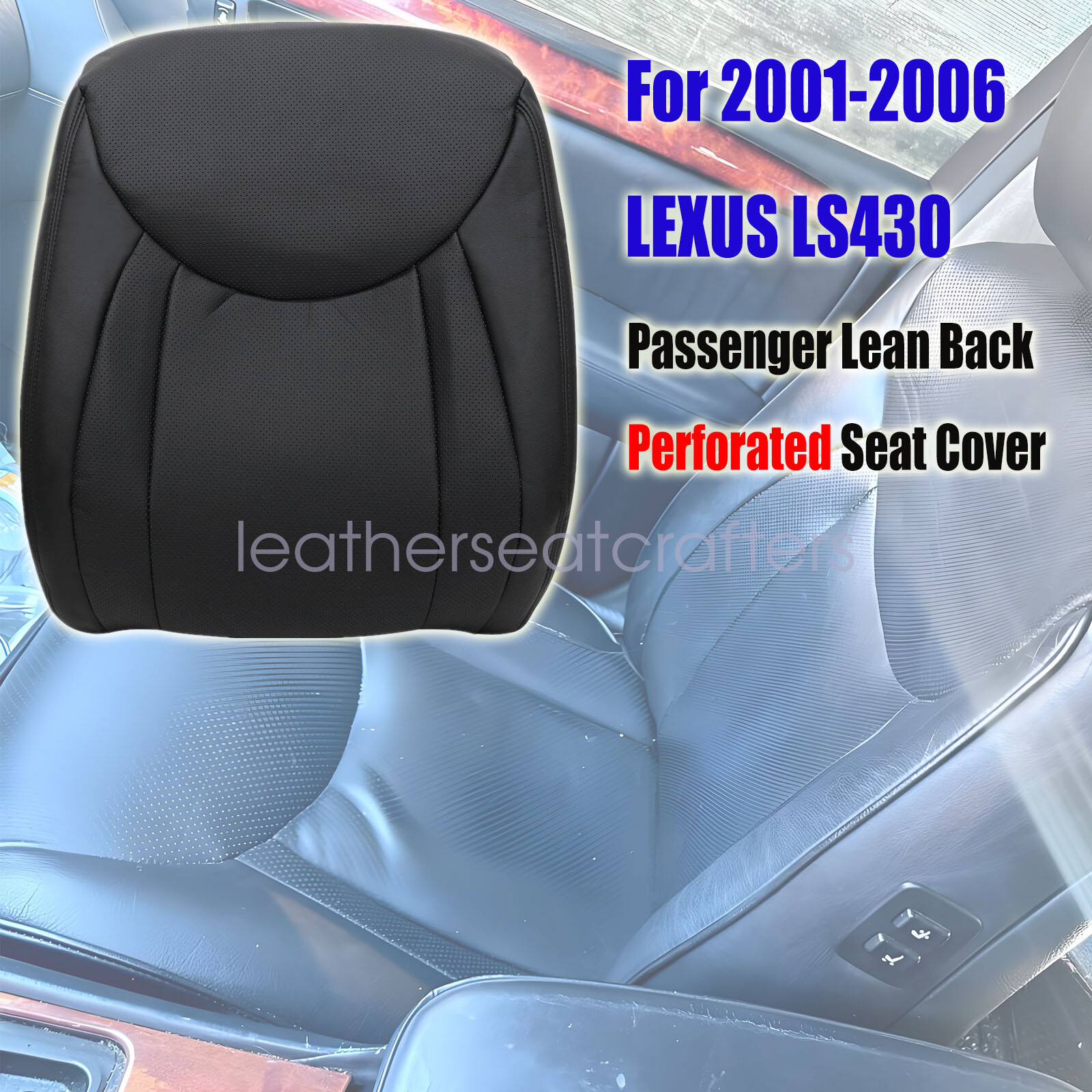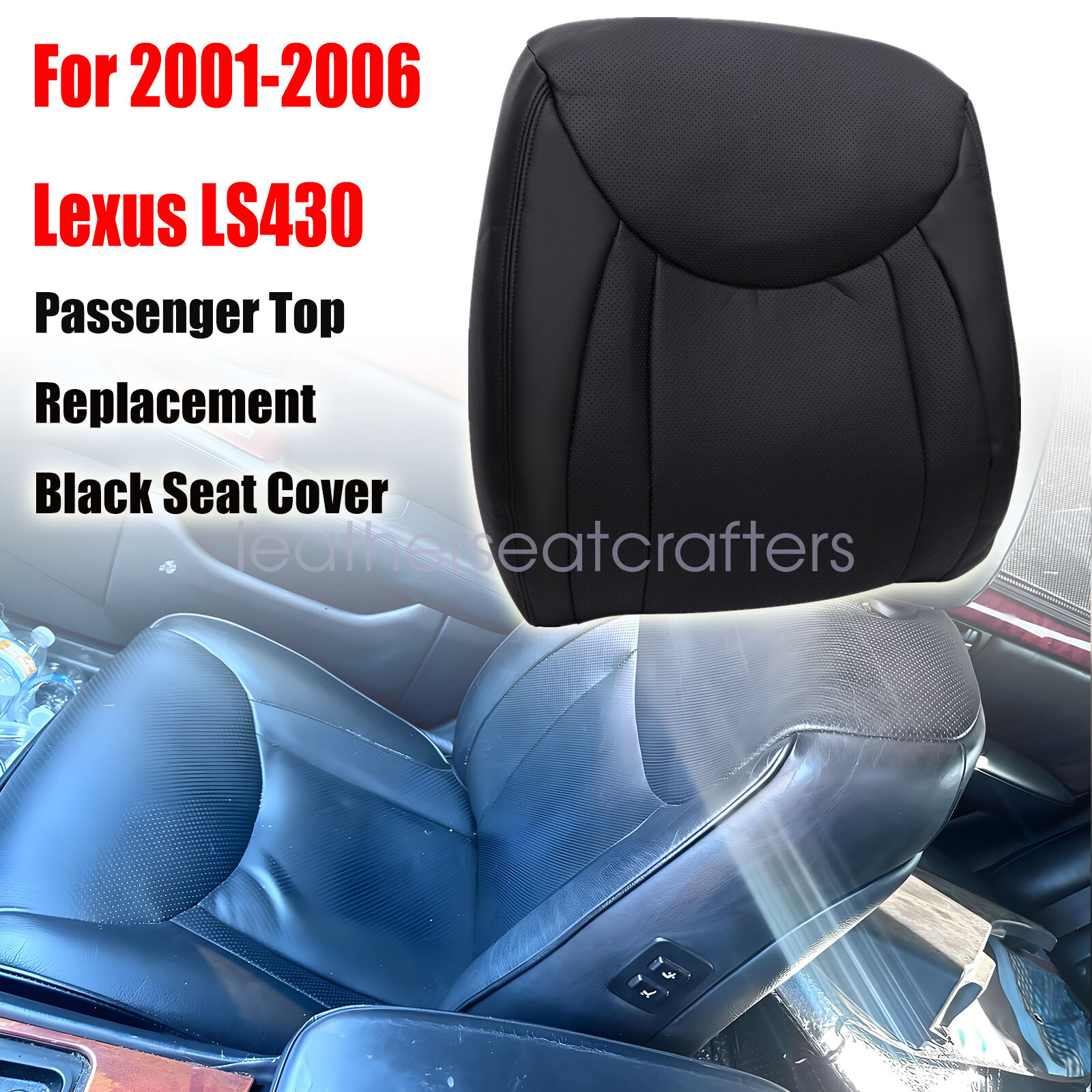 2001 2002 2003 2004 2005 2006 For Lexus LS430 Passenger Top Leather Cover Black Details Description: Type: Passenger Top Replacement Leather Seat Cover Side: Front Passenger Side Color: Black Interior trim code: 20 , 21 OR 24 - On the VIN# sticker on the driver's door jamb Material: Perforated Microfiber Leather Make: LEXUS Model: LS 43 0 Fit Years : 2001 2002 2003 2004 2005 2006 This item is a new Custom-made, replacement in " Black " C olor for: 2001-2006 Lexus LS430 Base, Luxury, Ultra Luxury Package 2001 Lexus LS430 Base, Luxury, Ultra Luxury Package 2002 Lexus LS430 Base, Luxury, Ultra Luxury Package 2003 Lexus LS430 Base, Luxury, Ultra Luxury Package 2004 Lexus LS430 Base, Luxury, Ultra Luxury Package 2005 Lexus LS430 Base, Luxury, Ultra Luxury Package 2006 Lexus LS430 Base, Luxury, Ultra Luxury Package Heated Seats: Fits Heated Seats and Non Heated Seats Power Seats: Fits Power Seats and Non Power Seats Vehicles Seat Cover's Attached Padding: ½ Inch attached foam padding Warranty: 5 Year Package Including: 1x Top Leather Seat Cover If you do not know how to install, please contact us , We can provide video installation instructions Tips: This Passenger Replacement Lean Back seat cover, built to factory specs with Quality Leather to match the Interior of your vehicle! Our product is exactly the same as your existing cover and guaranteed to fit perfectly on your seat foam Pad. Any wrinkles seen in the pictures is from being in a box and guaranteed to disappear once installed Correctly. Please note this item is a replacement, not a slip on or pull over. (Foam pad and frame are not included). Please Note: Actual Replacement Cover. NOT A SLIP ON or PULLOVER. You will remove the old cover & then install the New Cover. Communication is the best way to solve the problem. If you have any problems after purchasing, please contact us in time, before opening return or case. Shipping policy: Payment: Returns: About us: Shipping policy: 1.Orders are usually shipped within 24 hours after your payment(except weekends & official holidays). You can log on to eBay to check your logistics tracking number. 2.Please make sure to provide us with correct,precise and detailed shipping address before purchase, and cannot change it once purchased. Payment: PayPal payment accepted only.Please purchase and pay for the item through the eBay. Returns: 1.If any item is defective upon receipt or do not work, please contact us for the condition,we will provide a solution for such cases. 2.Return is accepted within 30 days after the buyer receiving the item. About us: 1.Thanks for purchasing in our store,if you have any questions, please contact us immediately. We will provide you with the high quality service. 2.If you are satisfied with our products, please give us a positive feedback. On Jan 22, 2025 at 01:53:38 PST, seller added the following information: