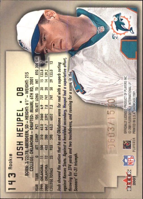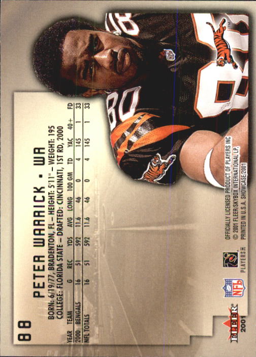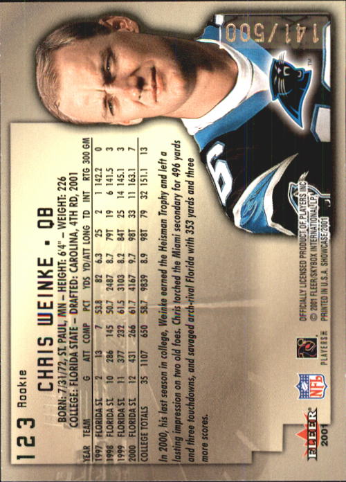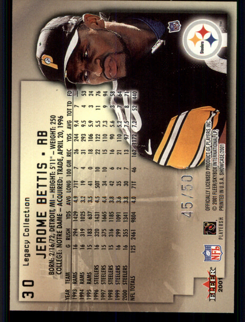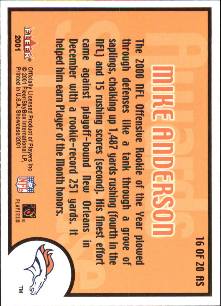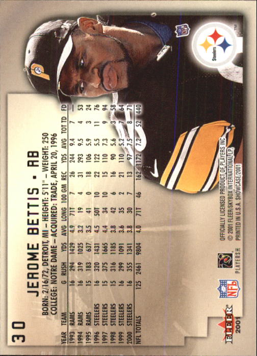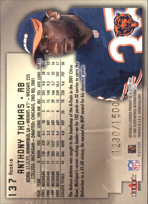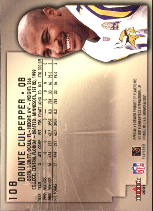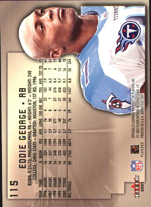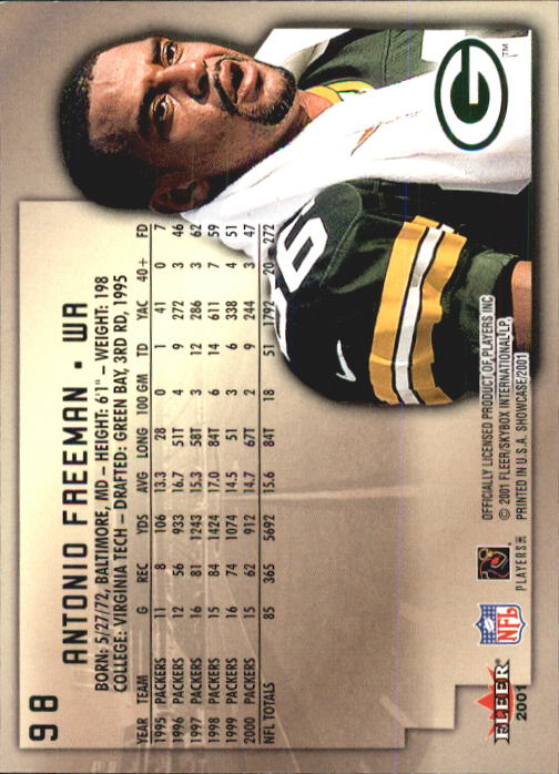 2001 FLEER SHOWCASE FOOTBALL --Main Set Cards --Cards #1 to #160 --Awards Showcase Insert Card --Legacy Collection Parallel Card --Most Scans Are Stock Photos ************************************ --THIS IS A MULTI-VARIANT LISTING (MULTIPLE AND VARIOUS CARDS WITHIN ONE LISTING) --PLEASE SCROLL THROUGH THE "Choose From" DIAL TO MAKE YOUR SELECTION(S) --STOCK PHOTOS COME FROM THE BECKETT ARCHIVES AND CAN BE WRONG BUT SAVES 100'S OF HOURS. PLEASE REFER TO THE DESCRIPTION WHEN IN DOUBT. ACTUAL PHOTOS ARE AVAILABLE UPON REQUEST. --EBAY STANDARD SHIPPING (PWE) IS THE DEFAULT SHIPPING. I ALSO OFFER USPS GROUND ADVANTAGE IN A BUBBLE MAILER SHIPPING FOR $4.50. ****PLEASE CHOOSE THE CORRECT SHIPPING METHOD WHEN CHECKING OUT. EBAY STANDARD SHIPPING (Plain White Envelope) HAS ITS LIMITS. 1-15 CARDS (DEPENDING ON THICKNESS OF THE CARDS), VALUED $20 AND UNDER AND MAXIMUM WEIGHT OF 3oz.**** --I CAN ONLY COMBINE SHIPPING PRIOR TO PAYMENT. IF THERE IS AN ISSUE WITH YOUR TOTAL, REQUEST A NEW INVOICE. ONCE PAYMENT IS MADE, CHANGES CAN NOT BE MADE. IF YOU GENERATE MULTIPLE ORDERS, YOU WILL GET MULTIPLE SHIPMENTS. --IF THERE IS AN ISSUE WITH YOUR ORDER, PLEASE LET ME KNOW? I TRY AND MAKE YOUR EXPERIENCE WITH SIMICARDS EASY AND QUICK, BUT ISSUES DO OCCUR AT TIMES. THANK YOU, TONY