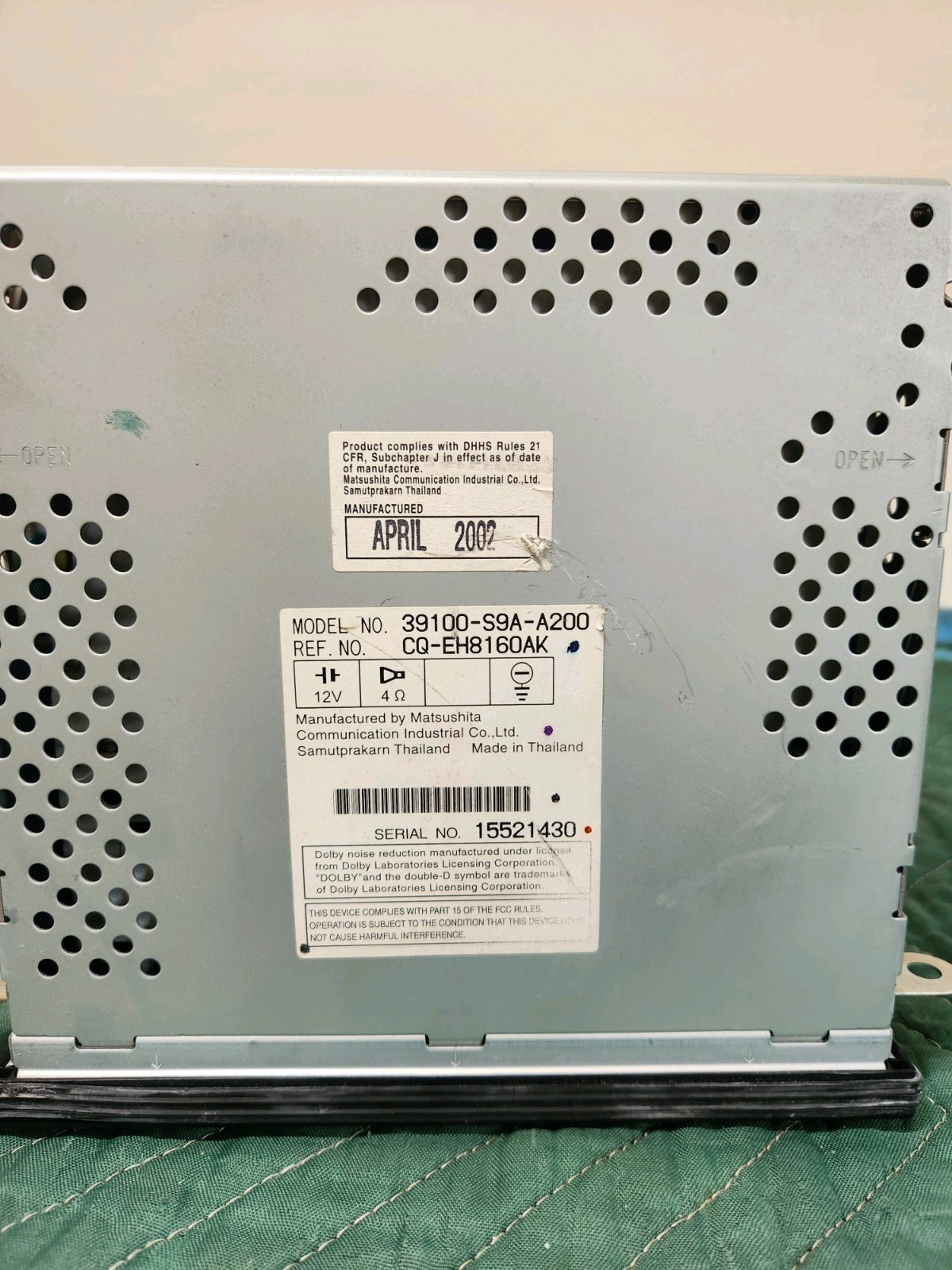 Welcome to JSGcarsupply, no big junkyards or big prices, just good deals for good cars to help you get back on the road. Any questions or offers feel free to reach out, thanks! This item has not been fully tested however does power on and is believed to work as should. The price does reflect that. The product is a genuine OEM radio for a 2001 Honda Accord, featuring an AM/FM tuner and a 6 disc CD player. Manufactured by Honda, the part number is 39100-S84-A300. This radio is designed specifically for the interior of a Honda Accord, providing a seamless fit and functionality for listeners to enjoy their favorite music and radio stations while driving.