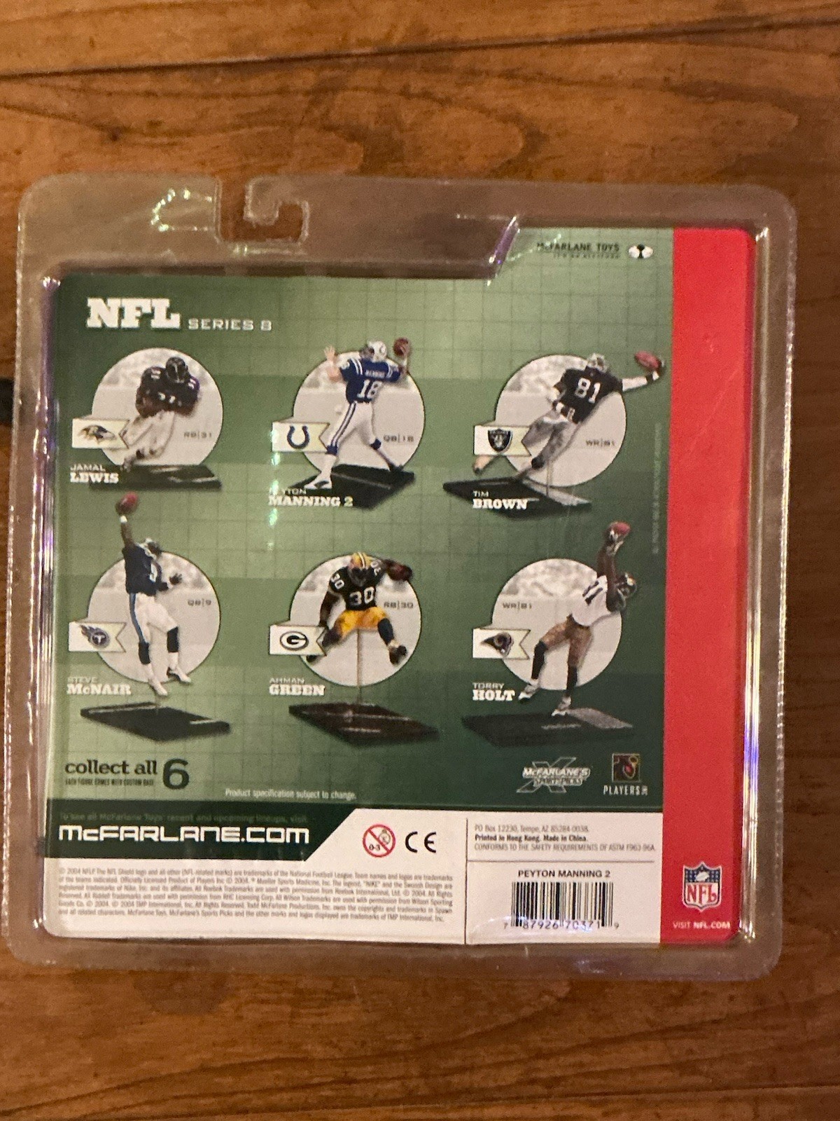Pristine sealed 2001 McFarlane NFL Series 3 Peyton Manning Colts QB-blue jersey, pass pose, factory bubble. No scratches, no dents, zero wear, even the barcodes look new. Early Manning, huge demand, perfect gift or collection piece. Two hundred dollars OBO. Ships same day in padded mailer, no junk fees Track Page Views With Auctiva's Counter