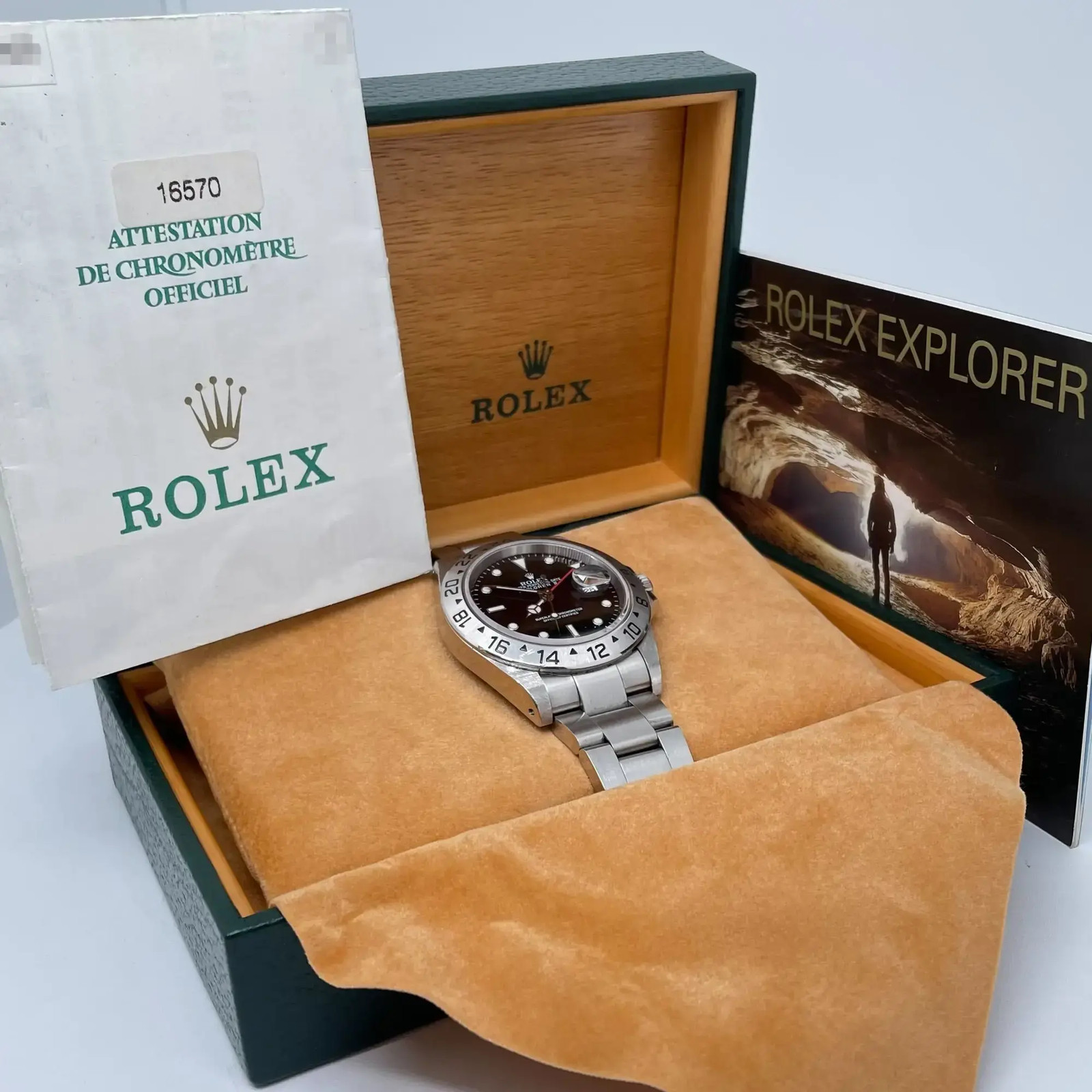Very good pre-owned condition. Clean dial, hands and hour markers. Calibrated timekeeping. Flawless complications. Comes with original box, manuals and Rolex papers dated 2001. Backed by a 1-year warranty and a 30-day return window. 2001 Rolex 16570 Explorer II 40mm Steel Black Mercedes Dial Automatic Watch Description Very good pre-owned condition. Clean dial, hands and hour markers. Calibrated timekeeping. Flawless complications. Comes with original box, manuals and Rolex papers dated 2001. Backed by a 1-year warranty and a 30-day return window. Ships from Address 608 5th Ave, STE 408 - New York New York, 10020 Phone 16465368182 Condition Excellent Good Fair Poor Very good pre-owned condition. Clean dial, hands and hour markers. Calibrated timekeeping. Flawless complications. Comes with original box, manuals and Rolex papers dated 2001. Backed by a 1-year warranty and a 30-day return window. Highlights Weight 123.5g Case Size 40 mm Wrist Fit 7.5 Inches Box Yes Papers Yes SKU 031136 General Info Brand Rolex Type Wristwatch Department Men Model Number 16570 Country/Region of Manufacture Switzerland Style Sport Model Rolex Explorer II Vintage Yes Features/Other Details Year Manufactured 2001 Customized No Handedness Right With Original Packaging Yes With Service Records Yes With Booklet Yes With Papers Yes SKU 031136 Features Date Indicator, Luminous Hands, Luminous Dial, Screwdown Crown, Self-Winding, Swiss Made, Swiss Movement, Water-Resistant, Fixed Bezel, Sapphire Crystal Band/Bracelet Details Band Color Gray Band Material Stainless Steel Max Wrist Size 7.5 Inches Closure Fold Over Push Button Clasp With Safety Band Type Bracelet Band Width 15.5 mm Lug Width 20 mm Wrist Fit 7.5 Inches Case Details Case Material Stainless Steel Case Color Gray Water Resistance 100 m (10 ATM) Watch Shape Round Caseback Solid Case Finish Polished Case Size 40 mm Case Thickness 12 mm Bezel Details Bezel Type Fixed Bezel Color Gray Display Dial Color Black Display Analog Indices Round Indexes Movement Movement Mechanical (Automatic) Number of Jewels 31 Jewels Movement Caliber Caliber 3185 Shipping Warranty Return Policy FAQ All in stock items are shipped within one business day. Same day shipping is available upon request. Due to insurance purposes, all packages are shipped with a tracking number and signature is required. We do not ship to PO Boxes. Import duties, taxes, and charges are not included in the item price or shipping cost. These charges are the buyer's responsibility. Please check with your country's customs office to determine what these additional costs will be, prior to bidding or buying. All watches sold by Luxxwatches are covered with in-house warranty for a period of Watches that lose time, gain time, do not change day or date, or have any other signs of not working properly will be serviced under our warranty program.The Luxxwatches warranty does not cover any damage resulting from water damage or physical harm. Additionally, the warranty does not cover polish for the watch case, any damage to crystal, band, bezel, straps, screws, crown/stem, finishes, clasps/buckles which are a result of normal wear and tear. Any lost parts of the watch, including stones, is not covered with the warranty. Any damage incurred as a result of exceeding the limitations of the watch manufacturer’s water resistance guidelines will not be covered with the warranty. Any third-party repairs, outside modifications or customizations will void the warranty. All the items purchased from Luxxwatches are covered with a 30-day money back guarantee. If you are not fully satisfied with your purchase, you may exchange or return your item for a refund within 30 days of first receiving your item. Item must be in the same condition as it was received, and include all original booklets, box & packaging. Any signs of wear, water damage, or altering will result in refusal of your return.Special order items, such as items we do not have in our warehouse and are specially ordered from our distributor or items that have been customized, are non-returnable.We offer free returns on eligible items, please contact us for the return shipping label. How to start an automatic watch? It’s very important to wind an automatic watch properly, prior to its use. The initial wind provided may only last a short while, making the watch appear defective once it stops ticking. To ensure your watch functions to the fullest of its capabilities, wait for it to stop and then wind the watch counter-clockwise 15-20 times. Next, push the crown back, screwing it down to preserve the water-resistance. *Be mindful that excessively winding the watch may cause damages to the movement, so don’t overdo it. Unlike self-winding watches, the crown doesn't need to be wound on quartz models. If it still isn’t ticking, simply bring it by for a battery replacement. Why the watch is running slow? A watch can lose time for various reasons including, but not limited to a dying battery, which will cause the second-hand to begin jumping across several seconds at once instead of passing each individually, magnetization, causing tension between small parts within the movement and natural friction from the watch being worn. If the watch is a mechanical model (Automatic or Manual-wind) this can also be a sign that the watch needs to be overhauled. How to use a chronograph? Operating a Chronograph requires using the pushers on the side of the case. The top pusher is used to start and stop the chronograph hand while the one at the bottom is used to reset it. Once the top pusher is pressed, the hand will run continuously, which you can track using the accompanying sub-dial. In order to reset the chronograph, it has to be stopped first. Otherwise the button will do nothing when pressed. How to set the date & time? Whether you have a screw or push-down crown, setting the date and time is simple. If its a screw-down, unscrew it by turning it downward, counterclockwise prior 