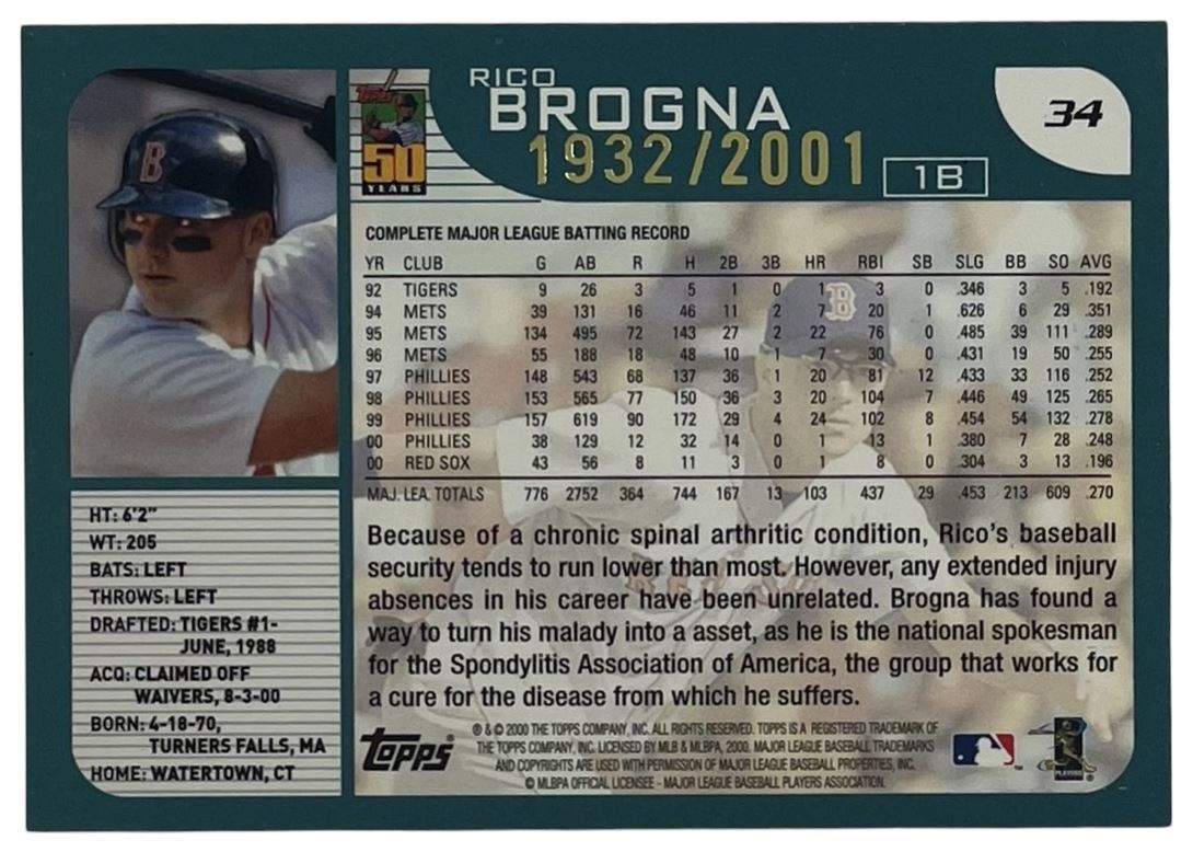 2001 Topps Gold #34 Rico Brogna Boston Red Sox /2001 Condition: NM-MT