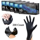 Product Description Product Description: Material: Nitrile Color: Black Features: High Quality: These black nitrile disposable gloves are 4 mils thick and offer good tear resistance, comfort, and durability. Comfortable and Healthy: Latex-free and powder-free. These gloves are an excellent choice for people sensitive or allergic to rubber and powders. Easy to Use: Unique production technology makes the inner side much smoother and easy to wear and take off. The elastic design provides superior comfort and dexterity for delicate tasks. Better protection for your hands. Multi-Purpose: These black disposable gloves look professional when cleaning dirt and grime. They are perfect for cleaning, hair coloring, tattooing, beauty salons, gardening, light housekeeping, food service, and janitorial. They can also be used for medical purposes, police investigations, lab work, etc. Multiple Sizes: These gloves are available in small, medium, large sizes, and extra large so that you can find the right glove for you. Package Includes: 1/2/3/4/5 Box of Black Nitrile Disposable Gloves (Each box contains 200 gloves) powered by You may also like