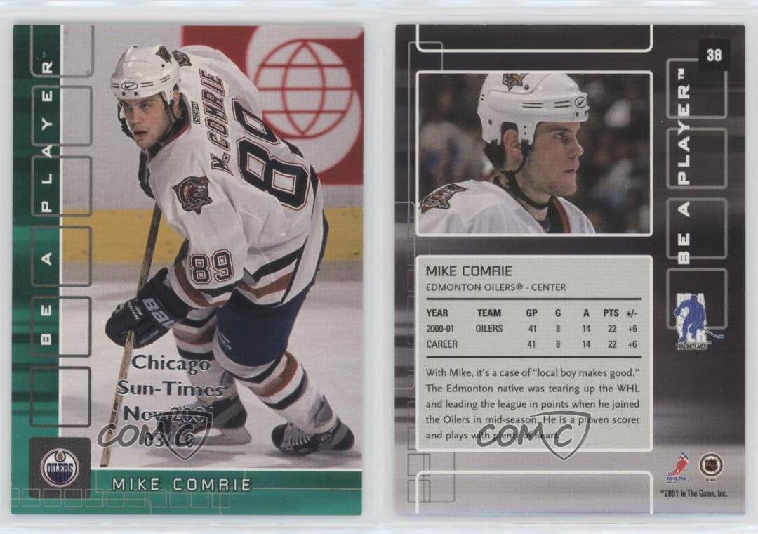 01-02 Be A Player BAP Memorabilia Mike Comrie 3/10 EMERALD Edmonton Oilers 2001-02. A . Card no.38. I ship each and everyday, Monday through Friday. Combined Shipping will be .40c per extra item for U.S. & Canada. $.75 extra for overseas. PLEASE CHECK OUT OUR WEEKLY AUCTIONS ALWAYS FINISHING ON SUNDAY NIGHTS. Please allow 1 - 4 weeks for you to receive your card in the United States. I almost always receive feedback for cards mailed to Europe before I receive from the States. I can only see this time frame caused by U.S. Customs. I am now offering economy shipping rates of $1.99 for a SINGLE card (non-Thick) to Canada purchased in my E-Bay Store, mailed in a white envelope. If you prefer this please let me know & I'll adjust your invoice before you pay. All invoices totaling over $75.00 will require tracking through expresspost at an additional $7.00 To Ontario & Quebec,8.00 Rest of Canada & an additional $7.00 to the States. (excluding S&H). This will protect both the buyer and the seller. International orders overseas will be an additional $12.50 to cover fees to track for registered mail. Thank-You & Good Luck Bidding.