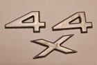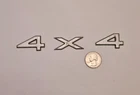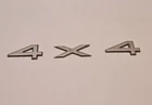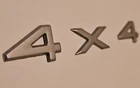 The product is a set of four silver plastic emblems designed for the Jeep Grand Cherokee from 2001-2004. Each emblem measures 1 5/8" x 3/4" and features a 4x4 theme. They are suitable for placement on the rear quarter, rear, left, or right of the vehicle using adhesive attachment. The emblems have a metallic finish and offer universal fitment. They are branded by Jeep. 2001-2004 Jeep Grand Cherokee 4x4 Rear Quarter Panel Emblems. Made of plastic, and could use a good wash. The "X" has a crack in one of the corners. No other major damage such as deep scratches, cracks, or breaks. Sold as a set of "4 x 4" Any questions? Feel free to ask! Location- 71