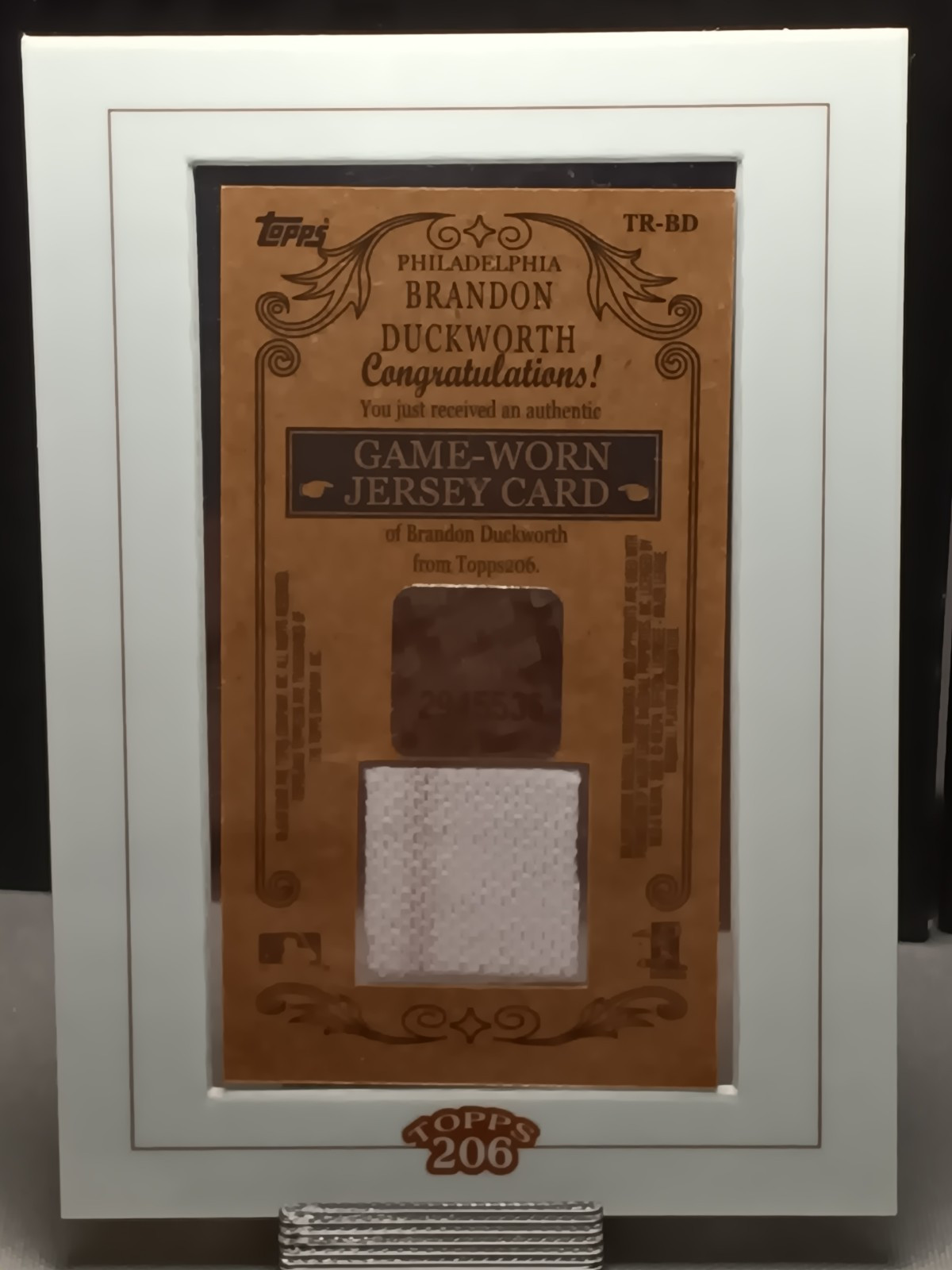 Uncover a piece of baseball history with the 2002 Topps 206 Relics #TRBD featuring Brandon Duckworth of the Philadelphia Phillies. This trading card is a cherished collectible for any fan of the sport or collector of baseball memorabilia. The card showcases Duckworth, capturing a moment of his career, and is a must-have for those who appreciate the nostalgia and legacy of Major League Baseball. Crafted by Topps, a trusted name in sports card manufacturing, this card is part of the 2002 Topps 206 set and is presented in standard card stock size with a 35 Pt. thickness. It is a genuine original, not a reprint, ensuring its authenticity. The card is in English and comes from a print run marked as SP, adding a level of exclusivity to this piece. Add this Brandon Duckworth relic to your collection and own a piece of the 2002 MLB season.