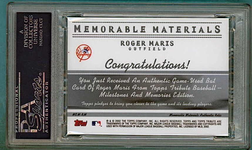2002 Roger Maris Topps Tribute Memorable Materials Relic # MCM-RM - New York Yankees