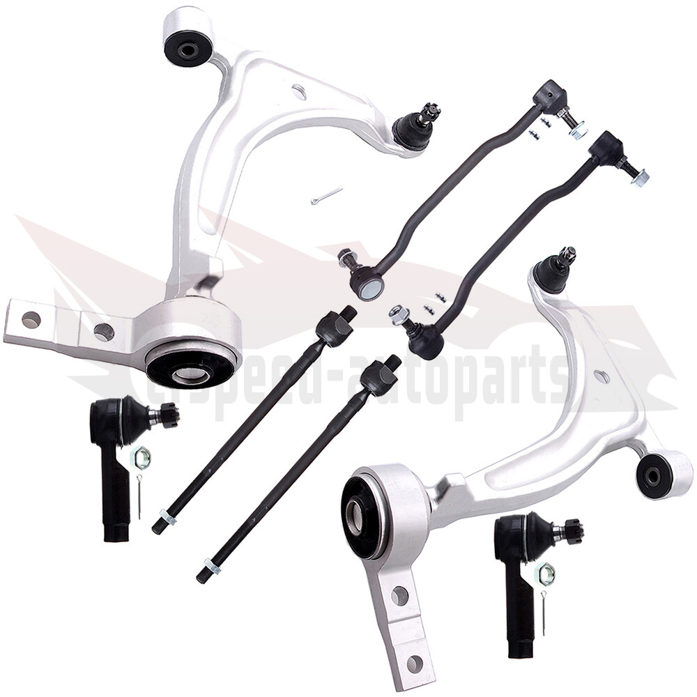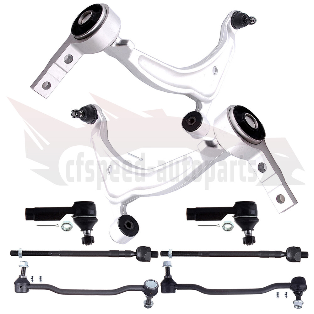 1.Notes (1).Please check the fitment chart above before payment making sure all the suspension parts listed on this page are compatible with your automobile. (2).Please refer to Moog official website before narrowing down your search so as to avoid unnecessary item not as described return requests. (3).Please contact our customer services for targeted discount after all the items are received if you have reached any targeted discount thresholds, the terms of which is at the bottom of this page. 2.Fits These Vehicles For 2002,?2003,2004 Nissan Altima For 2004,?2005,2006,2007,?2008 Nissan Maxima 3.Package Includes Cfspeed-autoparts 8X Complete Front Control Arm Suspension Kit For 2002-08 Nissan Altima & Maxima 1.Notes (1).Please check the fitment chart above before payment making sure all the suspension parts listed on this page are compatible with your automobile. (2).Please refer to Moog official website before narrowing down your search so as to avoid unnecessary item not as described return requests. (3).Please contact our customer services for targeted discount after all the items are received if you have reached any targeted discount thresholds, the terms of which is at the bottom of this page. 2. Fits These Vehicles For 2002,?2003,2004 Nissan Altima For 2004,?2005,2006,2007,?2008 Nissan Maxima 3.Package Includes 1 x Part# Front Left Lower Control Arm 1 x Part# Front Right Lower Control Arm 1 x Part# Front Left Stabilizer Bar Link 1 x Part# Front Right Stabilizer Bar Link 2 x Part# Inner Tie Rod End 2 x Part# Outer Tie Rod End Ball Joint Replacement Guideline: If there is a knocking or clunking noise in the area of the front axle when the car is traveling over road bumps, potholes or curbs, then there is usually a defect in a component of the wheel suspension. Picture(A) The side of the front axle from which the (vibration) noise is emanating can already be determined during a test drive. The type of noise also already provides certain indications for maintenance regarding which components might be faulty. Picture(B) 1.Raise the vehicle and remove the front wheels. 2.To loosen the fastening screws and fixing nuts of the compression ball joint more easily, spray them with rust remover and allow to act for a few minutes. Picture(C) 3.Loosen the fastening screws of the broken ball joint on the control arm and remove the nuts. Picture(D) 4.Loosen and remove the fixing nut of the ball joint on the steering knuckle. Tip:If the ball stud rotates, hold the ball stud in place with a hexagon socket. Picture(E) 5.Remove the bad or worn ball joint from the control arm. 6.Loosen the compression ball joint on the steering knuckle using a suitable special tool. Picture(F) 7.Clean the cone connection. Tip:For better sealing and durability of the ball joint sleeve, a little silicone grease can be applied to the contact surface. Picture(G) 8.Insert new compression ball joint in the control arm and steering knuckle and tighten with new fixing nuts. 9.Reinstall front wheels. Lower the vehicle and tighten the wheel studs to the tightening torque specified by the vehicle manufacturer. 10.Measure the chassis and adjust it using the various holes on the compression ball joint if necessary. 11.Finally, carry out a test drive. Sway Bar Stabilizer Link Replacement Guideline: While driving, the following signs may indicate a faulty sway bar stabilizer link: (1).Rattling and thumping noises on rough roads. (2).Imprecise vehicle handling. (3).Stronger inclination of the vehicle during cornering. If the sway bar stabilizer link is found to be defective, it should be replaced as described below. Picture(A) 1.Raise vehicle and remove front wheels. Tip:Always check both stabilizer links and replace them in pairs if necessary. 2.Spray fastening nuts of the stabilizer link with rust remover and let act for a few minutes. Picture(B) 3.Loosen the lower fastening nut of the stabilizer link at the stabilizer and remove. Tip:If the ball stud also starts to turn, hold it with a suitable tool. 4.Press stabilizer link out of torsion bar. Picture(C) 5.Loosen the upper fastening nut of the stabilizer link at the suspension strut and remove it. Tip:If the ball stud also starts to turn, hold it with a suitable tool. Picture(D) 6.Press stabilizer link at suspension strut out of bracket. Picture(E) 7.Insert new stabilizer link at suspension strut. Picture(F) 8.Tighten stabilizer link at suspension strut to the tightening torque specified by the vehicle manufacturer. Tip:Secure the ball stud against twisting with a suitable tool. Picture(G) 9.Insert new stabilizer link at stabilizer. 10.Tighten stabilizer link at stabilizer to the tightening torque specified by the vehicle manufacturer. Tip:Secure the ball stud against twisting with a suitable tool. Picture(H) 11.Remount the front wheels. Lower the vehicle and tighten the wheel studs to the tightening torque specified by the vehicle manufacturer. Tip:Even if replacing the stabilizer link does not directly affect the chassis setting, we recommend checking the axle setting and adjusting if necessary after working on the suspension. 12.Conclude with a test drive. Tie-Rod End Replacement Guideline: If you feel a bump in the steering when driving over road bumps or curbs, this might be due to worn tie rod ends or inner tie rods. Clicking noises during sudden steering movements can also be symptoms of a defective tie rod. In order to determine the exact cause and replace the defective tie rod, the car must be elevated with a vehicle lift in order to be examined more closely. This useful tip applies to the exchange of tie rod ends and inner tie rods, which together form the so-called tie rod. Picture(A) Note: Cleanliness is extremely important when working on the power steering. Incorrect work and contamination can lead to leakage and, in the worst case, to failure of the steering assistance. 1.Lift the vehicle and dismount the front axle wheels. 2.Spray the fastening nut of the tie rod end