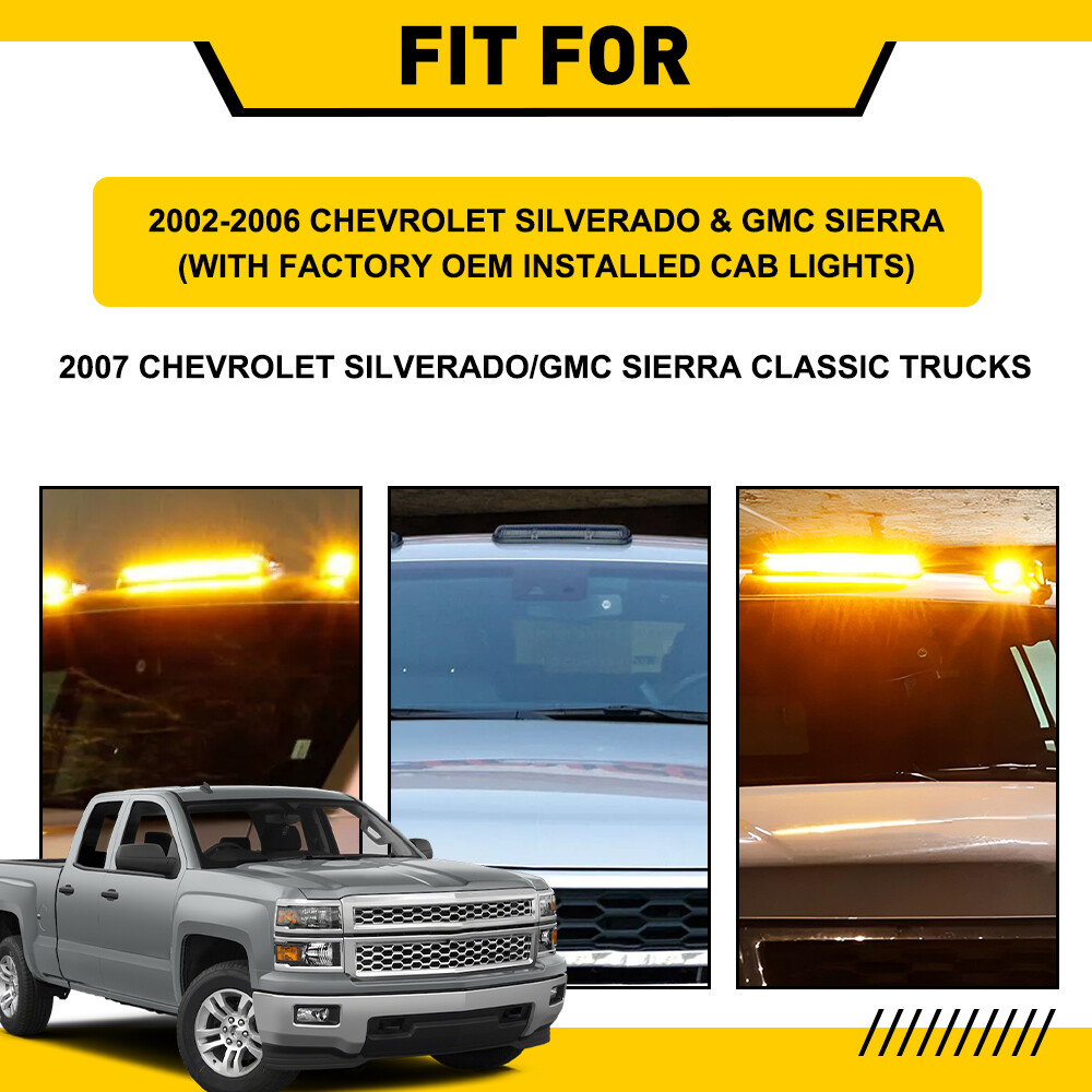 Fit for: 2002-2006 Chevrolet Silverado & GMC Sierra (with factory OEM installed cab lights) 2007 Chevrolet Silverado/GMC Sierra Classic trucks. Specifications: Lens Color: Smoked Light Color: Amber/White LED Quantity: 12 LEDs in each side marker and 24 LEDs in the center lamp Wiring Method: Black wire: the negative pole Red wire: the positive pole Suitable Voltage: 12-24V Waterproof Grade: IP68 Service Life: 50,000h+ Features: *High Brightness Super bright LED bulbs, improve driving safety when driving at night. *Excellent Material Style Lights Cab Amber/White 12+24LED Fit 2002 Silverado 2003-2006 Sierra IP68 Fit for: 2002-2006 Chevrolet Silverado & GMC Sierra (with factory OEM installed cab lights) 2007 Chevrolet Silverado/GMC Sierra Classic trucks. Specifications: Lens Color: Smoked Light Color: Amber/White LED Quantity: 12 LEDs in each side marker and 24 LEDs in the center lamp Wiring Method: Black wire: the negative pole Red wire: the positive pole Suitable Voltage: 12-24V Waterproof Grade: IP68 Service Life: 50,000h+ Features: *High Brightness Super bright LED bulbs, improve driving safety when driving at night. *Excellent Material Made of high-quality ABS light shell to ensure long-lasting, it is not easy to fade. *IP68 Waterproof Grade High-strength waterproof (IP68) can adapt to outdoor bad weather. *Driving Safety Improve visibility at night, foggy days, heavy rain and snow, or other extreme conditions. *Stable Performance The cab roof light with stable performance provides a better shopping experience for you. Packaging Include: 3 Pieces Cab Lights, Wires, and Hardware Item Specifics Brand : cartoolgarageUser Warranty : 2 Year Type : Top Mount Running Light Assembly Fitment Type : Direct Replacement Universal Fitment : Yes Features 1 : High Brightness Features 2 : Excellent Material Features 3 : IP68 Waterproof Grade Features 4 : Driving Safety Features 5 : Stable Performance Packaging Include 1 : 3 Pieces Cab Lights, Wires, and Hardware Lens Color : Smoked Light Color : White/Amber LED Quantity : 12 LEDs in each side marker and 24 LEDs in the center lamp Lighting Technology : LED Country/Region of Manufacture : China Placement on Vehicle : CAR ROOF Suitable Voltage : Suitable Voltage Waterproof Grade : IP68 Service Life : 50,000h+ Payment (1) Instant PayPal payment is the preferred method of payment. (2) We also accept payment via PayPal, DebitCard, Visa, MasterCard, Discover. (3) We will only ship to the confirmed PayPal shipping address given with the payment. (4) If you want to ship to other address, please change your PayPal shipping address before you make payment. (5) To avoid initiating an unpaid item claim, please pay within 7 days. Shipping (1) We will ship your item(s) within 24 hours. (2) We ship this item to US usually via USPS first class mail. It usually takes 3-6 working days to deliver. Returns (1) We offer free return & money back guarantee. If you are not satisfied with your purchase for any reasons, you can return the item for refund or replacement/exchange. All returns must include the original packaging. (Please refer to our return policy for details.) (2) If you don't return goods within 60 days from date of purchase, your right to cancel will be revoked. Any items damaged because of incorrect installation will not be refunded. Please contact us for return or troubleshooting help prior to returning any products. (3) Unauthorized reselling of AUXITO products is strictly prohibited and we can't honor the warranty if purchasing from the unauthorized reseller. Contact Us [Our office hours are MONDAY - Saturday 9:00PM - 6:00PM PST, but we will response you once we get your message .There will be some delay on respons if you send message or E-Mail on Sundy.] (1).Negative feedback will not help resolve any problems you have, please contact us via eBay messages before leaving negative feedback, our customer service will make best effort to help you with the issues. (2).We maintain high standards of excellenceand strive for 100% customer satisfaction! Feedback is very important to us. We request that you contact us immediately BEFORE you give us neutral or negative feedback, so that we can satisfactorily address your concerns. FAQ Why swith to LED? LEDs not only give your vehicle a clean, modern look but, with proper use, will outlast any halogen bulb and HID bulb! Low energy draw, high lumen output, and instant on/off LED technology out shines stock bulbs in every way. Which bulbs are used in my vehicle? Check Sylvania automotive lamp replacemnt guide, you can select the year, make, and model of your vehicle, then select the application you want to replace or upgrade from stock. What does CAN Bus mean? CAN Bus means Controller Area Network Bus. This system monitors your vehicle and reports operating conditions. CAN Bus systems are commonly found in European vehicles such as BMW, Audi, Mercedes, Volkswagen, Porsche, and in many American vehicles. While most late model American vehicles have CAN Bus systems, it is always good to check with your vehicle dealer to see which system your vehicle has before purchasing electrical products. When do you need Warning Canceller? Some vehicles with cmplex internal computers(such as Audi,BMW,Jaguar,Mercedes,etc.) might report on-dash errors or flickering on the headlights. The warning canceller fixes the dashboard warning and flickering effect. Bulb Out Dashboard Error: On some vehicles, the dashboard will report as if you have a headlight bulb missing or burnt. It does not affect the headlights functioning, but the light on-dash will be on. The warning canceller fixes the issue. Flickering Issue: This happens when your vehicle does not recognize the new headlights installed. When turning the headlights on, the vehicle's computer does not understand the signal back from the headlights hence thinking they are still off. This triggers the headlight flickering effect. The warning canceller solves this issue. LED Advantages: Very 