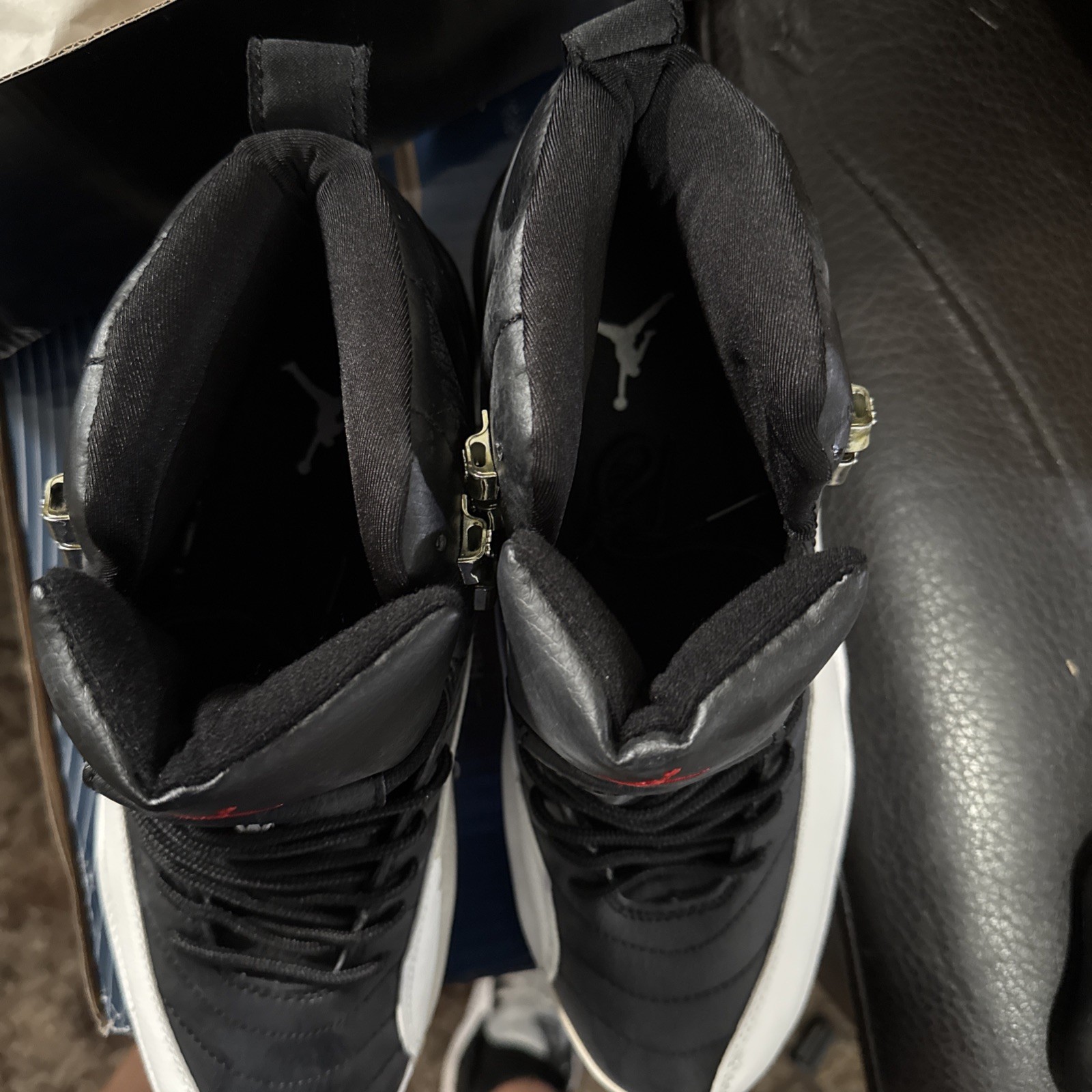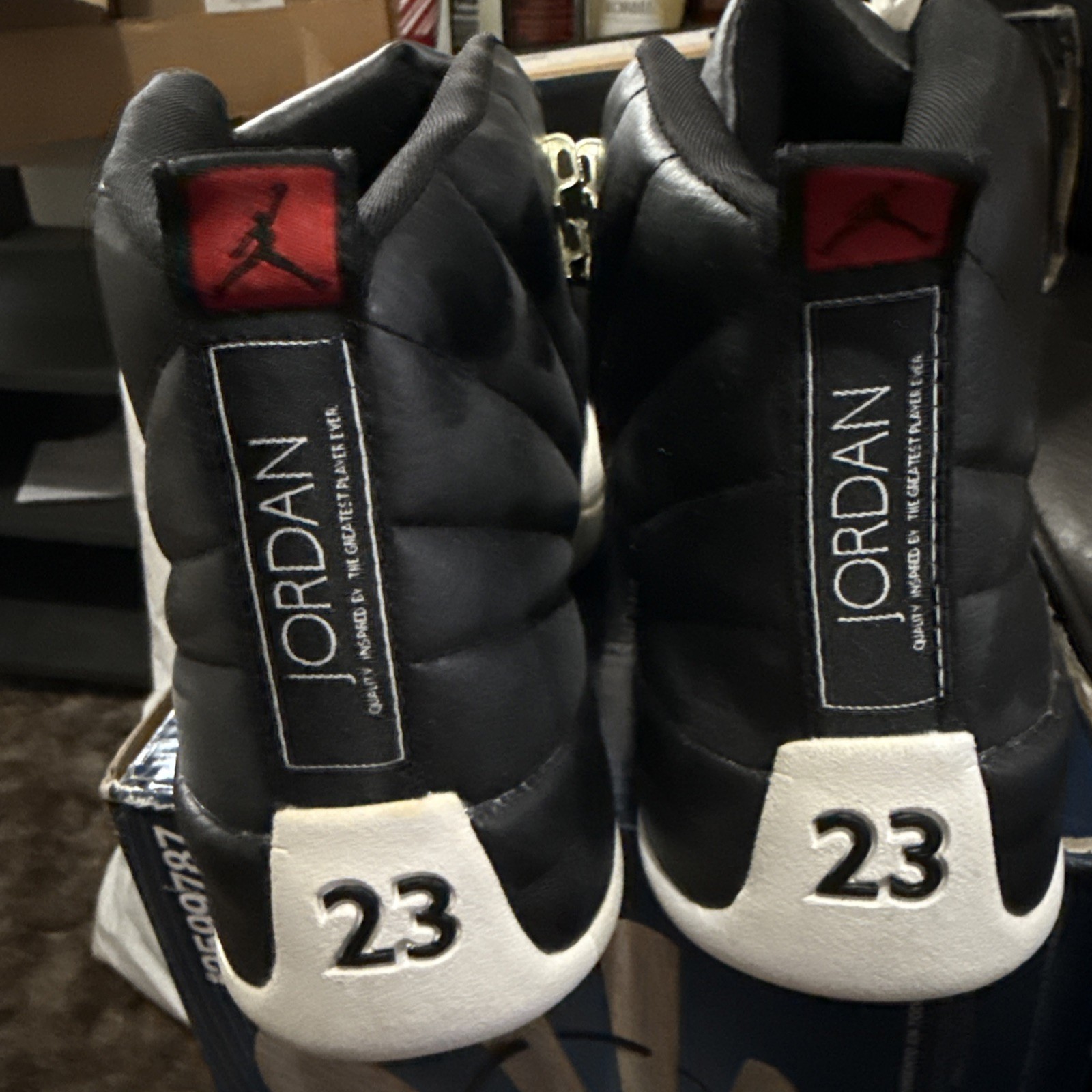 The product is a pair of 2003 Air Jordan 12 Retro “Playoffs” in size 11, with the original box from 2003. These athletic sneakers by Jordan are designed for men and feature a classic black colorway. The Air Jordan 12 model is known for its sleek silhouette and signature style, making it a sought-after collectible for sneaker enthusiasts and Jordan fans alike. Pairing the iconic design with the original packaging adds an extra layer of authenticity and value to this timeless shoe.