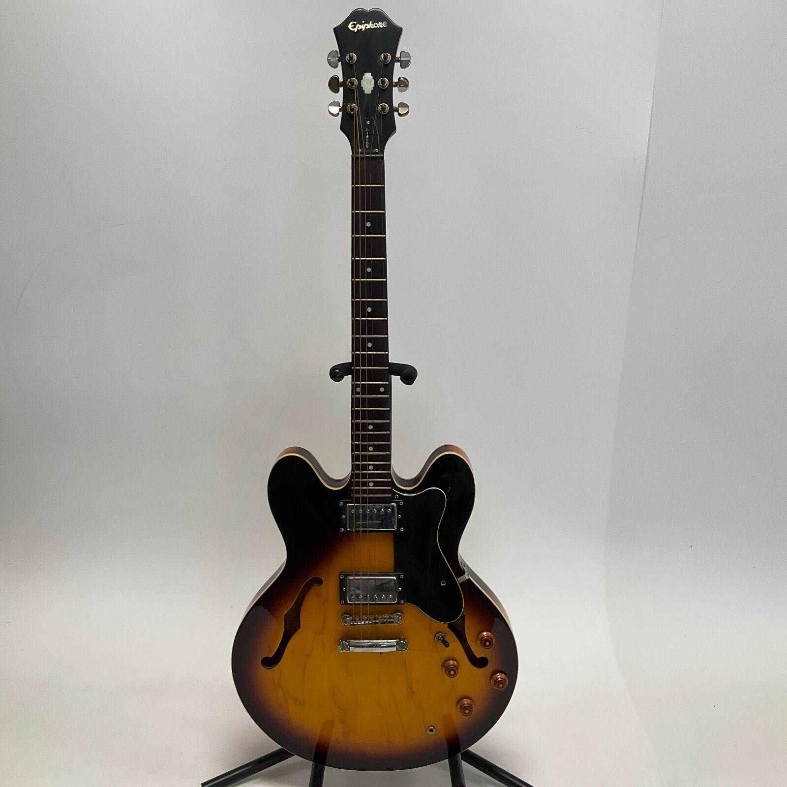 You are looking at a Epiphone DOT VS Sunburst Semi-Hollow Body Electric Guitar with Case This item is previously owned. The guitar has some evidence of wear from use. Missing one of the strings. Comes with a hard case. The case has some surface marks and wear. Missing a screw at the pick guard. Please see all pictures for details! About Us Customer service is our #1 priority! If for any reason you are dissatisfied with your purchase we offer a 30 day money back guarantee unless otherwise noted in the listing (AS-IS/For Parts - No returns.) We only accept items back in the condition that they were sent to you. Items that are listed AS-IS are not eligible for this money back guarantee. If you are unhappy with your purchase PLEASE contact us BEFORE leaving feedback or contacting eBay so we can work with you to resolve any problems. Shipping When we charge shipping to our customers we only pass on to our buyers exact shipping costs - no added fees. We offer combined shipping for multiple items purchased, so if you purchase more than 1 item from us, please wait for us to combine shipping costs. We require signature confirmation on all items that sell for $750.00 & more per eBay's selling policy. We also insurance all items that sell for $250.00 & more. PLEASE NOTE: WE DO NOT WORK/SHIP ON HOLIDAYS OR WEEKENDS! We use the eBay Global Shipping program for international shipping. DLLR License #991 Please note, we are not an authorized distributor or manufacture's representative of this item. *This product may contain a chemical known to the state of California to cause cancer and birth defects or other reproductive harm* Track Page Views With Auctiva's Counter