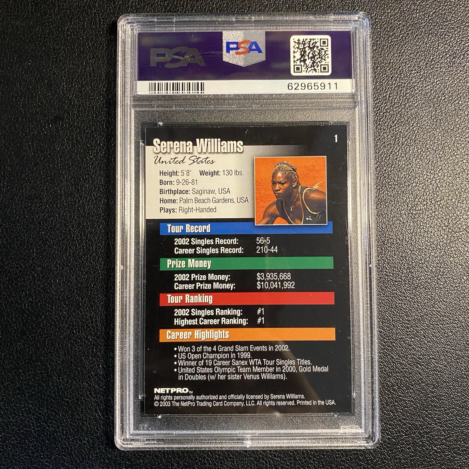 *2003 NetPro Serena Williams Rookie Card PSA 10 Gem Mint RC #1 *Pictured Item Is What Will Be Received *We Always Ship With Care Often Using Bubble Wrap & Other Packing Materials To Ensure The Protection Of Your Purchase *Please Message With Any Questions & Have A Great Day!