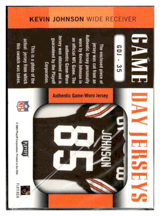 2003 Playoff Prestige Kevin Johnson Game Day Jerseys Card GDJ-35
