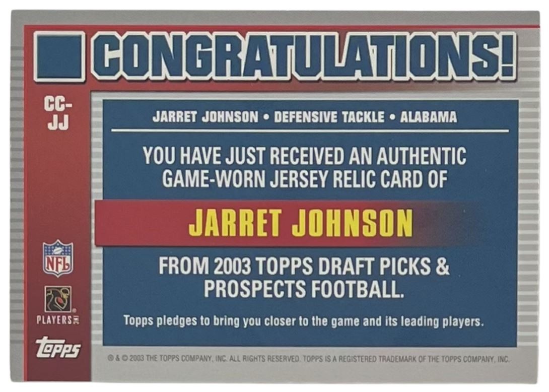 2003 Topps Draft Picks & Prospects Collegiate Cuts #CC-JJ Jarret Johnson Alabama Crimson Tide Condition: NM-MT