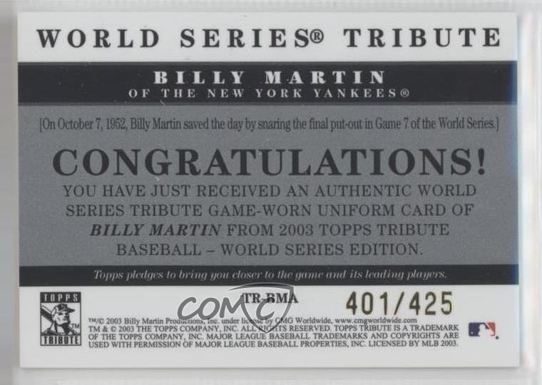 Home2003 Topps Tribute World Series Relics Billy Martin #TR-BMA 425 MEM