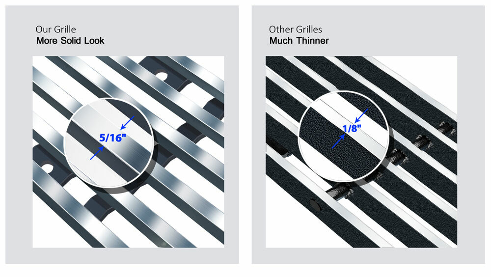 Description This item includes Bolt Over/Overlay/Bolton (Drilling Not Required) Silver Main Upper Grille Grill Inserts with Hairlines surface finish, mounting hardwares and installation paper. Fitment * Compatible with Honda Pilot 2003-2005 Features 【INSTALLATION】This is Bolt Over/Overlay/Bolton (Drilling Not Required) 1 pc 8x6 Horizontal Billet grille insert. OE grille shell remains on the car after installation. 【CUSTOM FIT】Compatible with Honda Pilot 2003-2005 【SPECS】Each grille made from premium Stainless Steel SS and customized to fit the Main Upper of your vehicle. All necessary hardware and instruction are included. Grille insert only, logo or emblem, frame or shell is NOT included. 【PERFECT DESIGN】Each grille made from premium stainless steel with hairline brushed surface that offers long lasting shine. This grille enhances the visual appearance of your car. 【SATISFACTION GUARANTEED】If the car grille has any quality problem, please feel free to contact us. We will solve your problems with professional and sincere service.