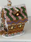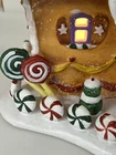 Holiday Time 2004 Village Collectibles Gingerbread House is a Medium-sized, hand-painted porcelain Christmas village piece. With a whimsical, Traditional style, it features an Asymmetrical shape with a 3D effect. This Limited Edition, Retired item is illuminated and has a textured finish, suitable for every day or seasonal display. Standing at 9 inches tall, it showcases a colorful, Multicolor design of a Gingerbread character. Perfect for any room, this collectible piece captures the festive Christmas theme. Beautiful piece , small repair on “ icicles “ on back corner of building, hard to see , picture # 3 . No original box , comes with light & cord Very good condition, very rare
