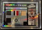 Dive into the world of sports memorabilia with the 2004 Playoff Absolute Tools of the Trade Adam Dunn Materials card, numbered TT-1. This rare collectible, with a limited print run of just 10, features a piece of game-used memorabilia from the Cincinnati Reds' power-hitter, Adam Dunn. It's a must-have for fans and collectors alike, offering a tangible piece of Major League Baseball history. The card is part of the esteemed 2004 Playoff Absolute Memorabilia set and comes with features such as an insert and serial numbering, enhancing its collectibility. Manufactured by Donruss/Playoff, this sports trading card is a tribute to an iconic athlete's career and a standout addition to any collection.