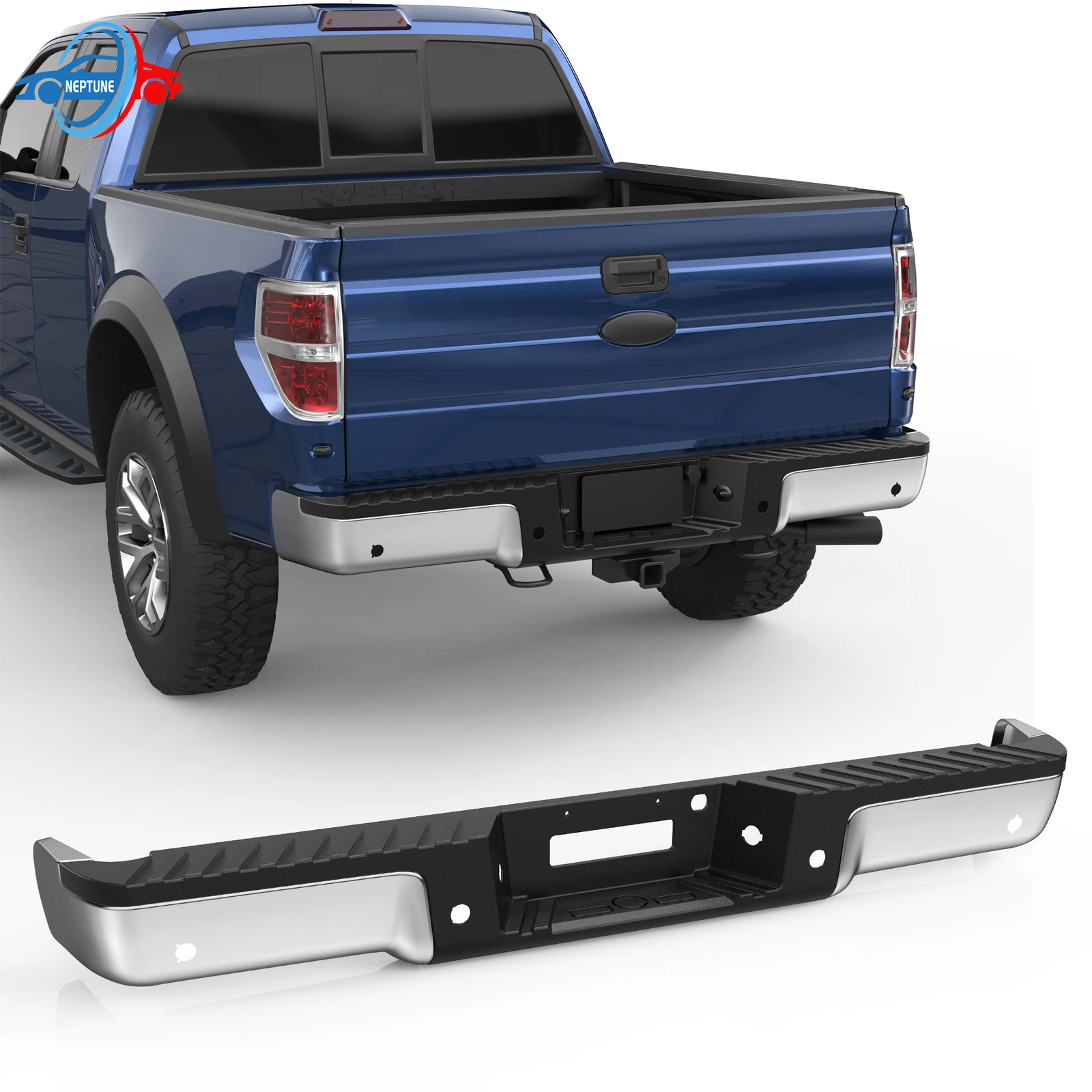 Fitment: For 2005 F-150 King Ranch For Models With Rear Object Sensor Holes For 2004-2005 F-150 (submodel: Lariat, XL) For Models With Rear Object Sensor Holes For 2006 F-150 (submodel: Harley-Davidson Edition, King Ranch, Lariat, XL) For Models With Rear Object Sensor Holes, Production Date To August 8 2005 Specifications: Finish:Chrome Material:Steel Fitment Type:Direct Replacement Type:Step Bumper Parking Aid Sensor Holes:With parking aid sensor holes Partslink Number: FO1103120, FO1103128 Package Content 1x Pickup Rear Bumper 1 x Set of License Plate Lamp with Harness Some Bolts and Screws On Dec 29, 2024 at 18:21:12 PST, seller added the following information: On Jan 2, 2025 at 05:20:46 PST, seller added the following information: