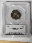 This is a 2004-S Clad Proof Florida State Quarter coin that has been certified by PCGS as PR70 DCAM. The coin features the State Flag of Florida and is an uncirculated single coin from the United States Mint in San Francisco. The denomination is 25 cents and it is a type of State Quarters coin. The certification number is the same as in the photos.