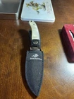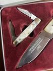 This 2005 Limited Edition Winchester 3 Piece Knife Set is a must-have for any collector or outdoor enthusiast. The set includes a Winchester brand knife with a classic model design, featuring a pen or straight back blade type with beautiful ivory color handles. This knife set also comes with a sheath and tin, making it a perfect gift for anyone who loves factory manufactured modern folding knives. The knife set is categorized under Collectibles, Knives, Swords & Blades, Collectible Folding Knives, and Modern Folding Knives. With four blades in total, this knife set is perfect for everyday use or for special occasions. Get your hands on this limited edition Winchester knife set today and add it to your collection! Handles appear to be mother of pearl, I cannot guarantee this. This is in the tin, but cannot guarantee it has not been used. It looks new. Sheath fits large knife. Great condition. Please see all pictures of wear and condition. Selling as -is.