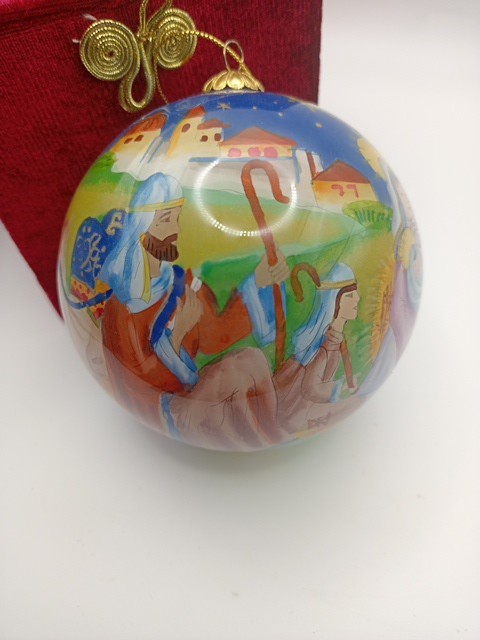 Beautiful hand painted glass Christmas ornament. SHIPPING We Primarily Ship Using Recycled Packaging Materials. Occasionally We May Change the Method of Shipping. If You Need an Item Shipped by a Certain Carrier, Please Let Us Know Before You Place the Order. Batteries are not included. All Measurements are Approximate. RETURNS If the item is not completely satisfactory, we offer a 30-day return guarantee. Just open a return authorization through eBay and return the item. For New items that are Sealed and have been Opened a Partial Refund is Offered. Happy eBaying!