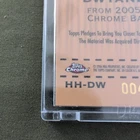 The 2005-06 Topps Chrome Dwyane Wade Hardwood Heroics Game Jersey trading card features a game-worn jersey relic from the NBA Finals. This serial-numbered card is a short print, part of the base set, and includes a stamped parallel variety. It showcases Dwyane Wade, a player for the Chicago Bulls and previously the Miami Heat, with ties to Marquette University. This memorabilia card is numbered 004 out of 400.