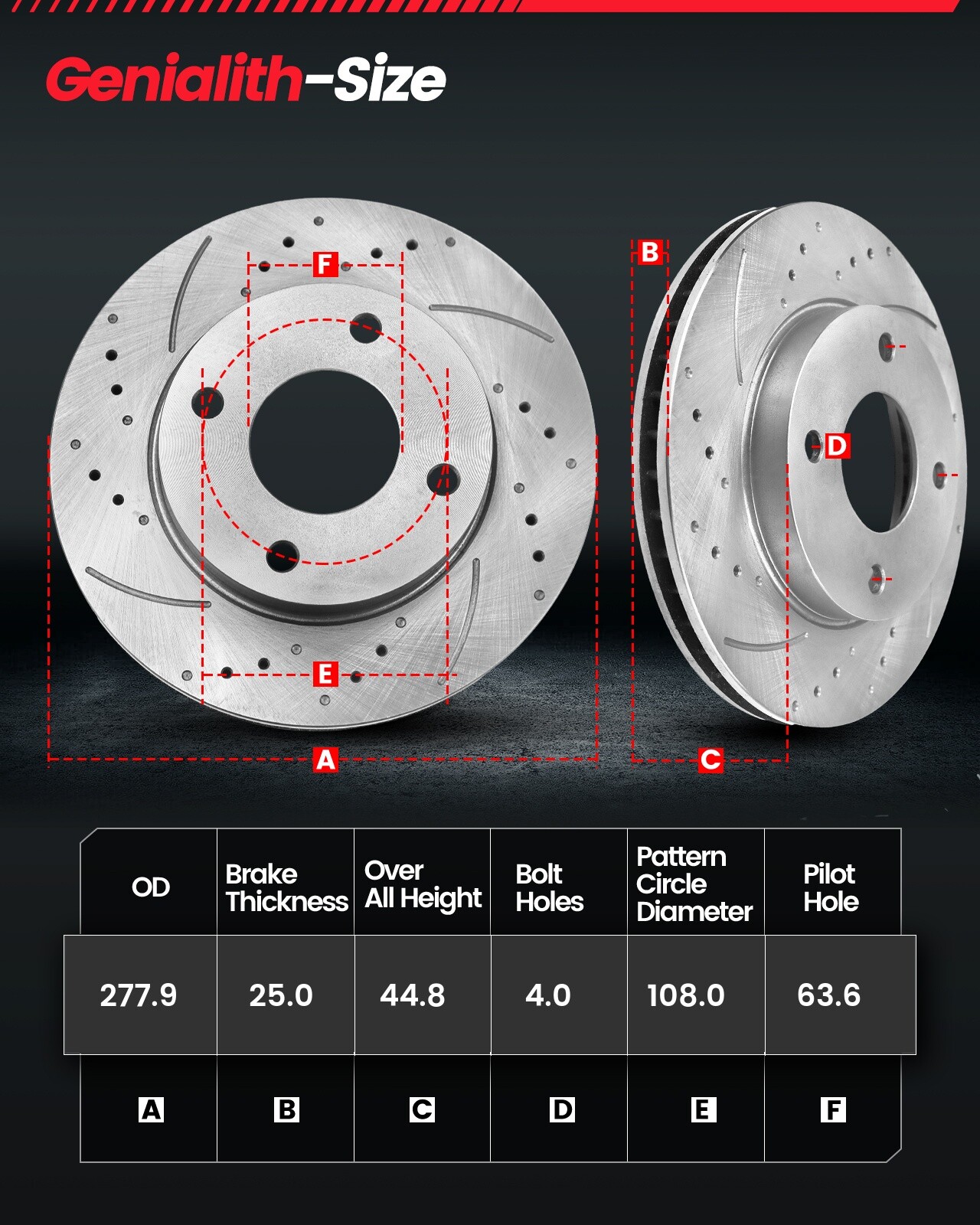 For Ford Focus 2005 2006 2007 2.0L 2.3L Front Drilled Disc Brake Rotors Pads Front Drilled & Slotted Brake Rotor + Ceramic Brake Pad Kit Fits Driver and Passenger Sides 10.94 in (278mm) Front Brake Rotors, Pls check your rotor size before ordering. 4 LUGS, 278mm Vented Front Rotor. Kit Includes: 2x Front Drilled & Slotted Brake Rotors - 2x Front Ceramic Brake Pads (Hardware Included) - FITS: MAKE MODEL YEAR RANGE SPECIFIC DETAILS FORD FOCUS 2005 - 2007 Not for SVT Models Brake Rotor Size: Rotor Outside Diameter: 10.94 in (278mm) Discard Thickness: 25mm (1 in) Over ALL Height: 44.8mm (1.8 in) Pattern Circle Diameter: 108mm (4.3 in) Pilot Hole: 63.6mm (2.5 in) Bolt Pattern: 4- Ø108 Bolt Hole Quantity: 4 Manufacturer Part Number: 1445625,4S4Z1125A,4S4Z1125AA,7S4Z1125A,BD126184,BD126184E, 1820037,3M512K021AB,4S4Z2001AA,5S4Z2001AA,BV6Z2001D,CV6Z2001A,CV6Z2001C,CV6Z2001E,CV6Z2001L,B3YH3323Z,B3YH3323ZA,B4YB3323Z,BPYH3323ZA,C2Y33323ZA,30681739,30736923,30742030,307420300,30793618,307936180,31341301,D1044C,D1563C,MX1044,PD1044,PS1044C,QC1044,QC1563,ZD1044,ZD1563,ZX1044 Shipment All orders will be shipped within 2 working days. All orders from 48 states in the mainland United States will be shipped free of charge through UPS or Fedex at our discretion. Orders outside of the 48 states of the mainland United States (Alaska, Hawaii, Puerto Rico, US territories, or international) will not be shipped. Please be note that when you order two or more items, we might ship them separately in different packages. We ship from New Jersey / Houston / California. We will choose the nearest warehouse according to your address, if some warehouses are out of stock, we can ship from another warehouse only. Return Customers must contact Genialith-Zone within 60 days of receiving the goods to approve any return or exchange. If the customer purchases multiple or incorrectly purchases the wrong product, the buyer is responsible for the return shipping cost. Any replacement made due to Genialith-Zone transportation errors will not result in any restocking or shipping costs. Payment Visa/Paypal/Payoneer and all forms of credit card are the accepted forms of payment. Please use the eBay checkout system when paying for your order. Immediate payment is required for all orders. We do not offer local pick up service. About US Drilled and Slotted Disc Brake Rotors Distributed by Genialith-Zone Genialith-Zone High Quality Materials Performance Brake Rotors are engineered for maximum performance, reliability, and durability. Drilled and slotted rotors will grab more bite to the brake pads giving you shorter stopping distance especially in wet weather. The drilled holes will reduce the heat that builds on the rotor. The slots on the rotor removes brake and road debris and prevent pad glazing. Warranty 1.We offer ONE-TIME 5-year warranty for you in the situation where the parts fail due to manufacturing defects during intended use during a 5-year period after purchase. 2.Please be advised that this warranty does Not apply to any part if it has been: Altered, misused, or improperly-installed; Installed on a vehicle for which it was not designed; Installed on a racing or high performance vehicle, or vehicle with modified suspension/rims/tires. 3.Please understand that we are not able to offer reimbursement for labor, mileage, car rental, or any other costs involved in installation or re-installation of the auto parts in question. For Ford Focus 2005 2006 2007 2.0L 2.3L Front Drilled Disc Brake Rotors Pads Front Drilled & Slotted Brake Rotor + Ceramic Brake Pad Kit Fits Driver and Passenger Sides 10.94 in (278mm) Front Brake Rotors, Pls check your rotor size before ordering. 4 LUGS, 278mm Vented Front Rotor. Kit Includes: 2x Front Drilled & Slotted Brake Rotors - 54132 4x Front Ceramic Brake Pads (Hardware Included) - 1044 FITS: MAKE MODEL YEAR RANGE SPECIFIC DETAILS FORD FOCUS 2005 - 2007 Not for SVT Models Brake Rotor Size: Rotor Outside Diameter: 10.94 in (278mm) Discard Thickness: 25mm (1 in) Over ALL Height: 44.8mm (1.8 in) Pattern Circle Diameter: 108mm (4.3 in) Pilot Hole: 63.6mm (2.5 in) Bolt Pattern: 4- Ø108 Bolt Hole Quantity: 4 Manufacturer Part Number: 1445625,4S4Z1125A,4S4Z1125AA,7S4Z1125A,BD126184,BD126184E, 1820037,3M512K021AB,4S4Z2001AA,5S4Z2001AA,BV6Z2001D,CV6Z2001A,CV6Z2001C,CV6Z2001E,CV6Z2001L,B3YH3323Z,B3YH3323ZA,B4YB3323Z,BPYH3323ZA,C2Y33323ZA,30681739,30736923,30742030,307420300,30793618,307936180,31341301,D1044C,D1563C,MX1044,PD1044,PS1044C,QC1044,QC1563,ZD1044,ZD1563,ZX1044 Shipment All orders will be shipped within 2 working days. All orders from 48 states in the mainland United States will be shipped free of charge through UPS or Fedex at our discretion. Orders outside of the 48 states of the mainland United States (Alaska, Hawaii, Puerto Rico, US territories, or international) will not be shipped. Please be note that when you order two or more items, we might ship them separately in different packages. We ship from New Jersey / Houston / California. We will choose the nearest warehouse according to your address, if some warehouses are out of stock, we can ship from another warehouse only. Return Customers must contact Genialith-Zone within 60 days of receiving the goods to approve any return or exchange. If the customer purchases multiple or incorrectly purchases the wrong product, the buyer is responsible for the return shipping cost. Any replacement made due to Genialith-Zone transportation errors will not result in any restocking or shipping costs. Payment Visa/Paypal/Payoneer and all forms of credit card are the accepted forms of payment. Please use the eBay checkout system when paying for your order. Immediate payment is required for all orders. We do not offer local pick up service. About US Drilled and Slotted Disc Brake Rotors Distributed by Genialith-Zone Genialith-Zone High Quality Materials Performance Brake Rotors are engineered for maximum performance, reliability, and durability. Drilled and 