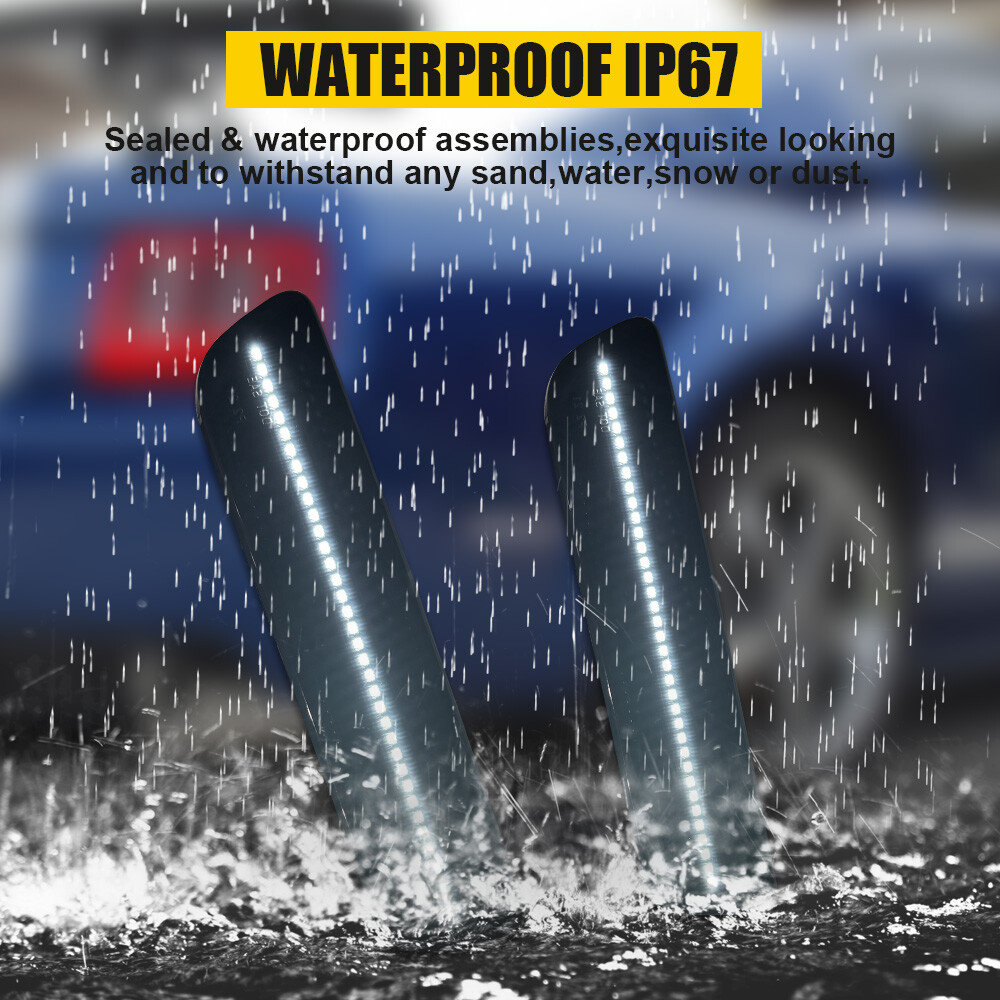 These smoked LED side marker lights are a perfect upgrade for 2005-2009 Mustangs! The sleek smoked lens gives a modern, aggressive look while the bright white LEDs improve visibility. They fit like OEM, install easily, and the IP67 waterproof rating ensures durability. The lights are noticeably brighter than stock, adding both style and safety. Great quality for the price—highly recommend for any Mustang owner looking to enhance their ride’s appearance.