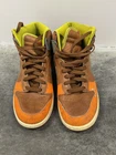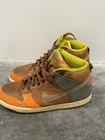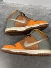 ONLY this listing. These smell like they came from a smoking household. They smell a bit like smoke. Introducing the 2007 Nike Dunk High Premium sneaker in the colorway Orange Blaze/Blur/Cognac. This shoe features a high-top shoe shaft style and lace-up closure for a secure fit. The outsole is made of leather for durability and the insole is made of fabric for comfort. This sneaker is perfect for any occasion, whether it's for activewear, casual wear, or workwear. It's a vintage shoe that was released in 2007 and has a classic, retro theme. The Nike Dunk High Premium is a must-have for any sneaker enthusiast and is available in US size 8, UK size 7, and EU size 41.