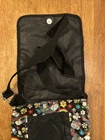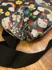 Black hello kitty messenger bag. Outer shell PVC. Magnetic clasp closure. See photos for condition and measurements