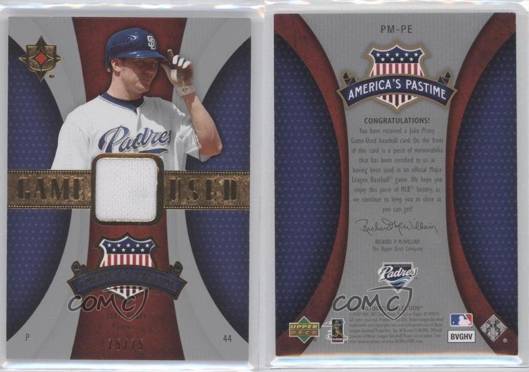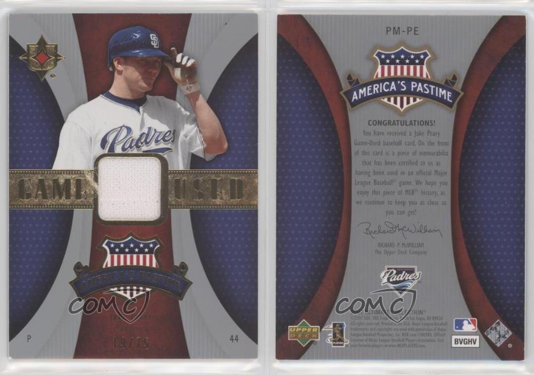 This is a must-have for any Jake Peavy or Padres fan! The 2007 Ultimate Collection America's Pastime Memorabilia card is a rare gem, limited to just 75 copies. The design is sleek, and the memorabilia piece adds a special touch. A fantastic addition to any serious baseball card collection—highly recommended!