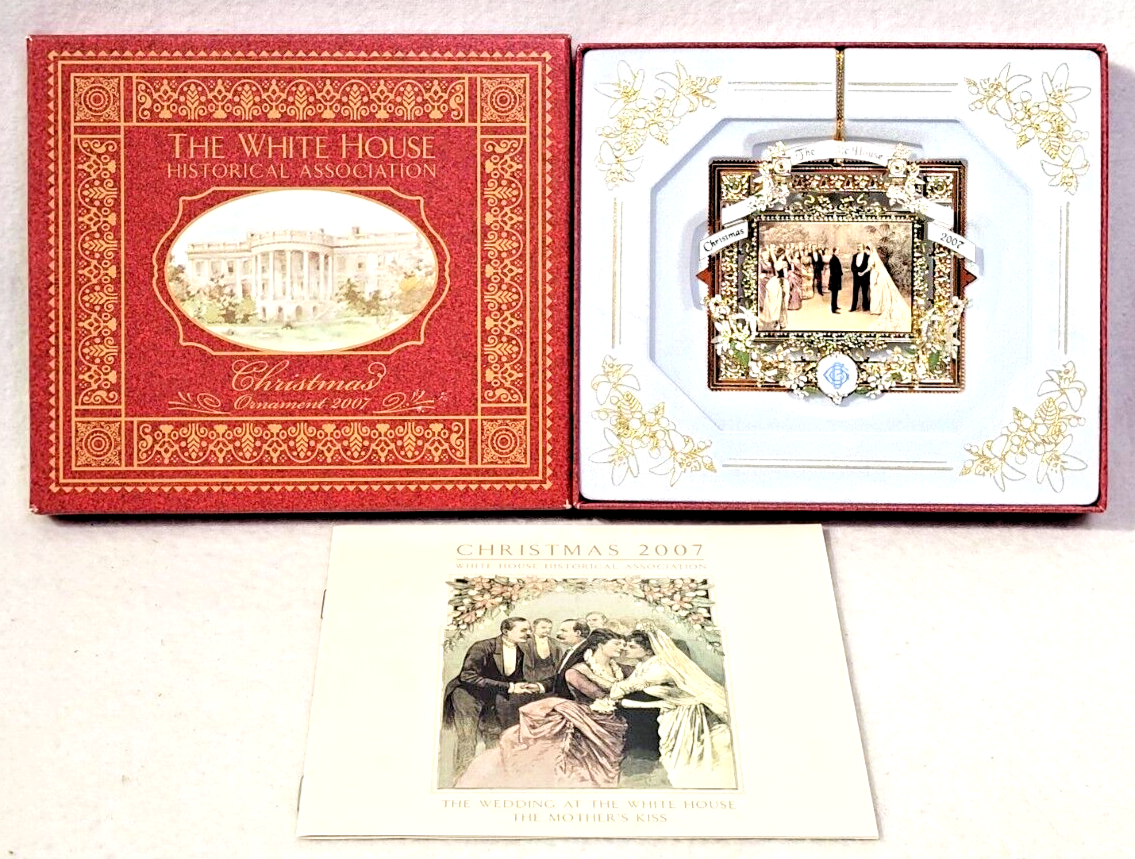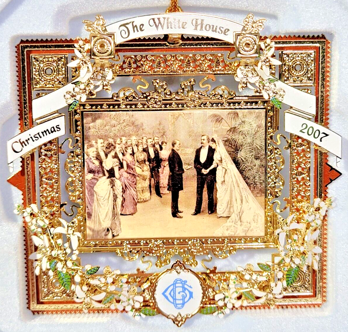 Celebrate the holidays in style with this beautiful Christmas ornament from The White House Historical Association. This ornament features a beautiful nostalgic 1886 design inspired by the Cleveland White House wedding. The multicolor ornament is perfect for any collector or enthusiast looking to add a unique piece to their collection. This original 2007 ornament comes boxed and includes a booklet covering Cleveland's history, including his marriage, for added enjoyment. It's a great addition to any Christmas decor and makes for a wonderful gift. Don't miss out on this opportunity to own a piece of history, straight from the White House! Each item we ship is carefully packaged to prevent any damage and is shipped immediately with tracking.