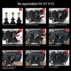 Feature: ☑ 300% Brighter : Equipped with high luminous efficacy chips. 8000LM/pair, 300% Brighter than standard halogen. LED headlight bulbs ensure the clarity of vision allows drivers easy to react to sudden movement. Effectively illuminate wildlife, falling rocks and obstacles. Huge improvement for road safety. ☑ Ideal Beam Pattern : LED bulb features 0.12inch slim led chips distance design that almost can emit 360 degrees illumination angle. Super focused beam pattern as stock halogen lamp, no dark spots or glare to oncoming drivers, avoiding scattered light problem to ensure safety. ☑ 50,000 Hours Lifespan : Aviation aluminum heat sink for an optimal heat dissipation. Efficient cooling system speed up heat dissipation to ensure LED headlight bulbs superior performance, lifespan up to 50,000 hours. ☑ 10 Mins Quick Install : Built-in driver and non-polarity plug, 1:1 same filament position as stock halogen. LED headlight mini size design for higher compatibility in factory housing. No modification required, easy installation in 10 mins. Plug & play! ☑ Superb Performance : CANbus ready and fit with 99% vehicles without issue. Integrated with EMC chip, no radio interference. Specification: ☑ Bulb Type : 9008/H13 ☑ Color temperature : 6000K white ☑ Beam Angle : 360 Degree ☑ Working Temperature : -40-150 degree ☑ Voltage : DC 9V~32V, built in IC driver, much more stable than normal LED bulbs, longer lifespan ☑ Heat Control : Aluminum Body ☑ Lifetime : >50000 hrs ☑ Waterproof : IP67 ☑ Lumens : 8000 lm per Bulb What's in the box: ☑ 9008/H13 High Low Bulbs * 2 How Do I Know These LED Bulbs are Right for My Vehicle? ☑ Check your vehicle user manual or original halogen bulb, the part number is marked above. ☑ Search "automotive bulb look-up" online, and enter your vehicle info to find out the correct size. ☑ Contact us, write down your vehicle year, make, and model, we will help you check.