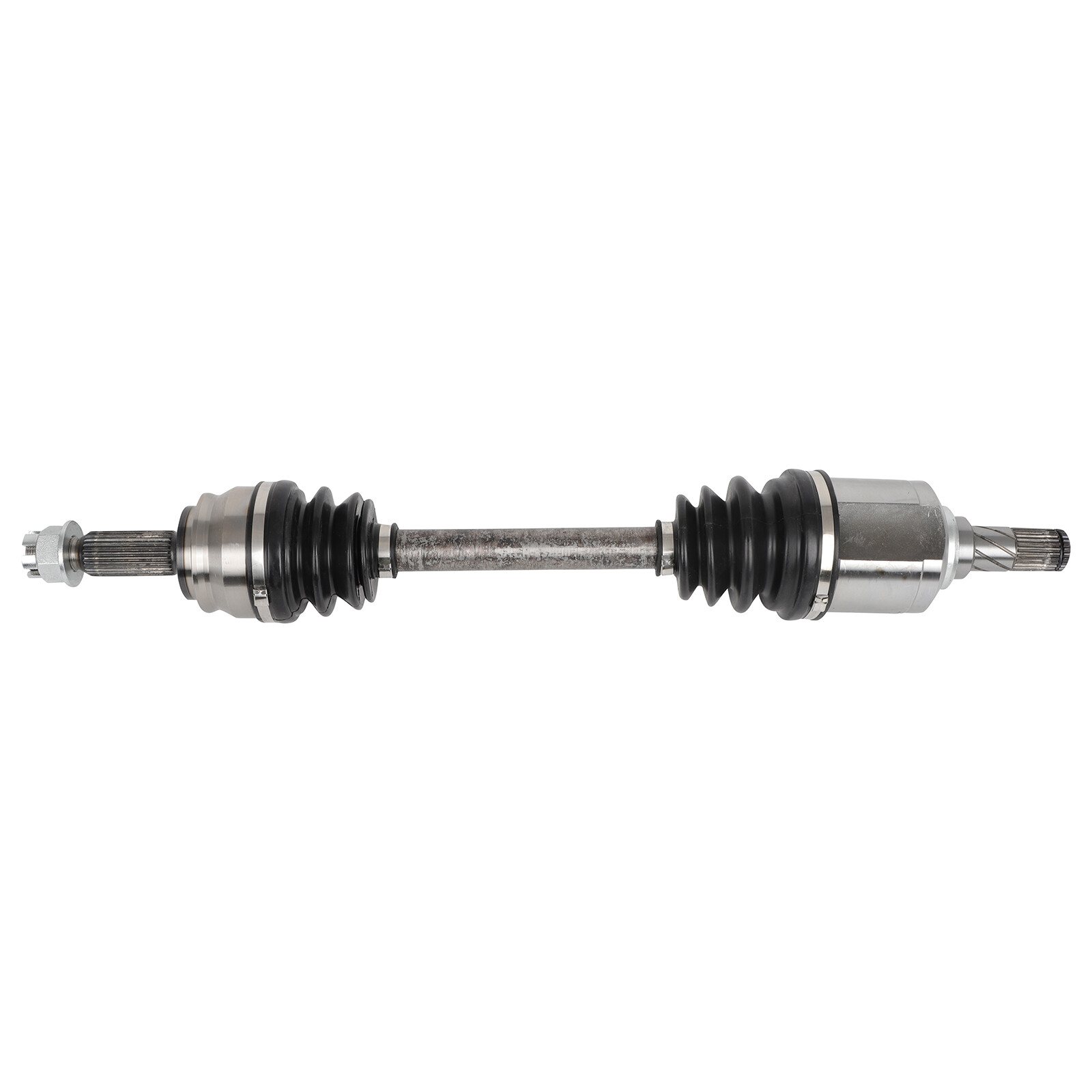 Specifications: Brand New - 100% Brand New and high quality auto parts. Easy installation - Direct Plug In Replacement. Heat Treated - All CV axles are heat treated to the highest standards to provide premium strength, increased tensile, and extended service life. Quality Control - All CV axles undergo an extensive quality control process to ensure a long and trouble-free performance. Precision Fitment - Machined splines for precise fit to OEM specifications. Premium Materials - Only premium raw materials to manufacture their products. Signs of Worn CV Axles: For Dodge Caliber 2007-2012 for Jeep Compass 2007-2017 Front Left CV Axle Shaft Specifications: Brand New - 100% Brand New and high quality auto parts. Easy installation - Direct Plug In Replacement. Heat Treated - All CV axles are heat treated to the highest standards to provide premium strength, increased tensile, and extended service life. Quality Control - All CV axles undergo an extensive quality control process to ensure a long and trouble-free performance. Precision Fitment - Machined splines for precise fit to OEM specifications. Premium Materials - Only premium raw materials to manufacture their products. Signs of Worn CV Axles: Clicking or Popping Noises A prominent sign of a worn CV axle is a clicking or popping noise, especially during sharp turns or when accelerating. This noise may indicate that the CV joint is damaged or the protective boot has torn, allowing dirt and debris to enter and damage the joint. Vibration or Shaking If you experience vibrations or shaking, particularly during acceleration, it can be a sign of CV axle wear. Worn CV joints can cause the axle to wobble, resulting in an unsettling sensation in the steering wheel or the vehicle as a whole. Grease Leakage Damaged or worn CV axle boots may lead to the leakage of grease around the axle joints. Inspect the boots visually for cracks, tears, or signs of deterioration. Grease leakage can accelerate wear and lead to joint failure if left unaddressed. Axle Boot Damage The CV axle boots are protective covers that keep dirt and moisture out while retaining grease within the joint. If the boots are torn or damaged, they should be replaced promptly to prevent further damage to the CV joints. Factors Affecting CV Axle Lifespan: Mileage and Driving Conditions While there is no set mileage at which CV axles must be replaced, factors such as mileage and driving conditions can affect their lifespan. Aggressive driving, frequent acceleration, heavy loads, and driving on rough or unpaved roads can accelerate wear and lead to earlier replacement. Regular Maintenance Regular inspections and maintenance can help identify early signs of CV axle wear. Routine inspections should include a visual check of the boots, listening for unusual noises, and monitoring any vibrations or steering irregularities. How To Change Your CV Axle: The process below is a general guide on the steps to replace a CV axle. Your vehicle may be slightly or drastically different, depending on the make and model. Refer to your vehicle’s service manual to see the exact steps that you’ll need to follow. You’ll also notice that we recommend using an impact wrench to remove the axle nut, but note that doing the job by hand is safer when done while the car is on the ground. If you’re following the by-hand route, step five should be performed before jacking up the car. Make sure the vehicle is in Park or that it is in gear with the parking brake set. Jack up the car and remove the wheel on the side where you will be working. Locate the axle nut. It will be in the direct center of the hub or wheel assembly where you removed the wheel. Some vehicles have a cotter pin to secure the axle nut. You’ll need to remove it using pliers to straighten the pin so it can be pulled out. You can spray it with lubricant if it’s rusted or stuck. Now it’s time to remove the axle nut. In some cases, this step may require quite a bit of effort. If this is the case, your safety bet is to do this step before jacking the car up. This is where the optional impact wrench will come in handy. The wrench will help you safely remove the axle nut without having to use a pry bar. Carefully remove the bolts holding the brake caliper brackets in place and remove the calipers. Instead of dropping the caliper to dangle on the brake line, use a carabiner or other small hook to support the caliper and keep pressure off the brake line. Loosed the bolts holding the outer tie rod to the steering knuckle. If there’s another pin here, you’ll again need to use pliers to straighten it out. In some cases, the steering knuckle and tie rod will not want to be separated. This will require a few light taps with a hammer or mallet. Remove the bolts holding the hub to the strut tower. You’ll need to keep the nut from turning while unbolting the hub. Look further down the axle to see where it meets the transmission. Use your pry bar to pry the axle from the CV joint. You should be able to remove the axle at this point. You might see transmission fluid or have some leak while prying the axle. This is completely fine, but you may want to set up a pan or tray to catch the fluid. Insert the new axle into the transmission where the old one was removed. You can use your mallet or a hammer wrapped in a towel to carefully coax the axle into position. Attach the new axle to the hub and begin replacing the bolts you removed earlier in the process:Hub/strut tower; Tie Rod/steering knuckle; Caliper Replace the axle nut. Here, as before, use an impact wrench if you have one to safely tighten the nut. If you don’t have one, get the nut as tight as you can without yanking on it while it’s up on stands. Replace the wheel and lower the vehicle. If you need to tighten the axle nut further, it’s best to do it with the vehicle on the ground, so that you can really push on a wrench or bar to tighten without worrying about the vehicle falling. FAQs Abou