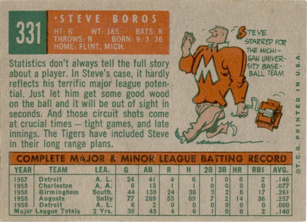 2008 Topps Heritage 50th Anniversary Buybacks #331 Steve Boros Detroit Tigers Condition: EX