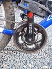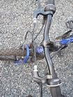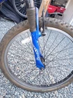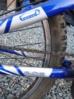 The 2008 Trek MT220 Youth Mountain Bike is a high-quality, durable bike designed specifically for young riders. With a 12" aluminum frame and front suspension, it provides a smooth and comfortable ride on various terrains. The 24" wheels and 21-speed grip shifter make it easy to tackle trails and enjoy the outdoors. This blue bike is lightweight, easy to maneuver, and features a step-through frame and adjustable seat for added convenience. With V-brake technology and derailleur gears, this Trek mountain bike offers a reliable and safe riding experience for children.