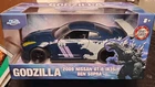 Capture the essence of power and style with the 2009 Nissan GT-R (R35) Ben Sopra diecast model car by Jada. Part of the coveted "Hollywood Rides" series, this 1/32 scale replica embodies the sleek design and high-performance aesthetic of the iconic vehicle, finished in an eye-catching dark blue that's sure to stand out in any collection. The model, still sealed in its original box, features intricate detailing and is crafted from durable diecast metal, ensuring a high-quality representation of the actual car. With its ties to the "Godzilla" theme, this collectible isn't just for car enthusiasts but also for fans of the character family. Ideal for ages 8 and up, it makes for a thrilling display or an impressive addition to any diecast vehicle collection. Package may have minor issues due to shelving, refer to pictures for details, however this is in excellent mint condition