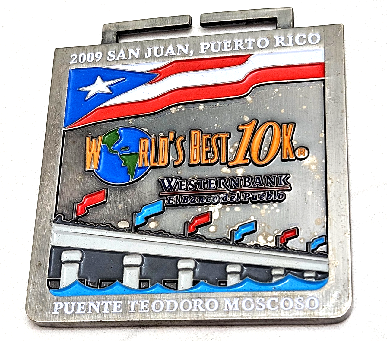 VISIT MY STORE / VISITA MI TIENDA SOBRE 1,000 SUBASTAS MENSUALES / OVER 1,000 MONTHLY AUCTIONS GANE $1 POR CADA $20 COMPRADO / EARN $1 PER EACH $20 BOUGHT PROUD MEMBER OF ANA, TNA, NTCA, ECI, CC>CC, NGC, USNS, ANACS, SNPR ************** OFFICIAL MEDAL OF THE TEODORO MOSCOSO BRIDGE WORLD'S BEST 10K RUN MARATHON OVER BRIDGE SAN JUAN PUERTO RICO *** 2009 *** SPONSORED BY EUROPE'S ADIDAS SPORTSWEAR COMPANY, WORLD'S 2ND LARGEST, & NOW DEFUNCT WESTERN BANK For English read below... SPANISH: Saludos, esta subasta es por una (1) medalla NICKEL CROMADO CON BELLO ESMALTE tamaño aproximado 60MM / 2.5" Diámetro. Usted recibirá la medalla descrita arriba y en el título. Por favor observe las fotos de referencia. Son bien difíciles de conseguir, usted recibirá LA PIEZA EN LA FOTO, enviada en mica plástica transparente. Gracias. ENGLISH: Howdy! Here you are bidding for one (1) MEDAL SIZED APPROXIMATELY 60mm / 2.5" DIAMETER IN CHROMED NICKEL WITH ENAMEL, FEATURING BEAUTIFUL VIEW OF BRIDGE. I am selling you the medal described above, and on the title. Please see the pictures for reference. Very difficult to find, you will receive THE EXACT SAME PIECE SHOWN IN THE PHOTOS, shipped inside transparent plastic coin flip. Thanks for watching! ENVIO / SHIPPING : EMPAQUE / PACKAGING Enviamos dentro de mica, cartón, cápsula, o protector acrílico, envuelto entre cartón grueso o burbuja, dentro de sobre o caja sellado con cinta adhesiva a los 4 lados. Haremos todo lo posible por resolver su problema y ganar su satisfacción. Algunas medalla o moneda quizá sea enviada en cápsula de acrílico como cortesía nuestra. Debido a que usted pagó por la medalla o moneda, y no por la cápsula, nosotros no somos responsables de reemplazar cápsulas recibidas rotas. Debido a que las medallas vienen con alguna que otra imperfección de fábrica, es normal que una medalla contenga algún rayacito o cantacito mínimo de lo cual no somos responsables. Las antiguedades que vendemos tienen imperfecciones por vejez, uso y desgaste, que pudieran no reflejarse en las fotos. Por eso sólo reemplazaremos o devolveremos dinero en caso de mercancía recibida gravemente dañada. Clientes que abusen con reclamaciones exageradas e infundadas serán bloqueados en el futuro. Items are put inside plastic wrap, coin flip or capsule, foam insert, card protector, bank note jacket, FDC jacket, or similar protective method, then shipped padded within card board or bubble wrap inside an envelope or box. We’ll do everything we can to help you and get your 5 stars. Some medals or coins may be shipped inside plastic capsules as a courtesy of ours. Because you paid for a medal or coin, and not for an acrylic capsule, we are not to be held responsible over capsules received cracked or broken. Medals received from the factory will feature minor scratches or nicks over which we shouldn't be held responsible. Likewise, vintage items we sell may feature imperfections due to age, tear, and wear, which may not reflect on the photos. Due to this, we will only replace or provide refund on items received greatly damaged. Clients maliciously seeking to take advantage of the system by placing bogus or exaggerated claims will be blocked from making future business with us. GASTOS DE ENVIO / SHIPPING CHARGES SUBASTAS pagan envío: 1er ítem gano pagará $5 o más; cada ítem adicional pagará $1 de envío. (a menos que se indique lo contrario) AUCTION ITEMS will pay: 1 st Auction item won pays either $5 or MORE. Each additional item will pay $1 each. (unless otherwise noted) EXTRANJEROS / INTERNATIONAL BUYERS Para más seguridad y proteger su inversión, utilizamos el Sistema de Envío Global Ebay. Si desea método alterno debe informarme antes de comprar. El comprador pagará los gastos de envío, incluyendo seguro y c ódigo de seguimeinto. NO ENVIAMOS SIN SEGURO PAGO. To insure your investment, we use Ebay’s Global Shipment system. If you want another method we must be asked prior to any purchase. Buyers will pay all shipping charges, to include insurance and tracking. WE WON’T SHIP ITEMS UNINSURED! PAGO TARDE / LATE PAYMENT POLICY Para facilitar y aligerar el proceso de envíos, hemos automatizado nuestro sistema de cobro: EBay procesará todo comprador malicioso que no haya saldado su compra en 7 días. Due to the large amount of items being sold, and to streamline expedient shipping process, effective APRIL 3, 2014 Ebay's automated non-payer assistant will start processing orders not paid within 7 days of purchase.NO EXCEPTIONS! TIEMPO DE ENVIO / WAITING TIME Todos los artículos serán procesados y enviados dentro de 10 dias laborables a partir de la fecha de pago. Visitamos el correo sólo 1 vez por semana, y NO somos responsables por artículos que tarden más de lo debido por culpa del sistema postal. CON SU COMPRA, USTED APRUEBA LO ARRIBA ESCRITO Y SE COMPROMETE A NO QUEJARSE POR RETRASOS EN EL RECIBO DE SUS ARTICULOS, SOBRE LO CUAL NO TENEMOS CONTROL. All items will be processed and shipped within 10 working days from date paid. We ship items only Once a week, and we are definitely not liable for items that might take longer to arrive than expected due to our postal system’s mismanagement. BY PURCHASING FROM US YOU UNDERSTAND OUR POLICIES, AND YOU AGREE NOT TO FILE ANY MALICIOUS COMPLAINT IN REGARDS OF ANY DELAY INCURRED, OVER WHICH WE HAVE NO CONTROL. CANCELACION / PURCHASE RETRACTION No cancelamos compras, favor seguir reglas de Ebay. Se puede retraer una puja de artículo en subasta a más de 12 horas antes de terminar la subasta. Se puede retraer una puja de artículo en subasta a menos de 12 horas antes de terminar la subasta, únicamente si se retrae la puja en menos de 1 hora de cometido el error y a más de 1 hora de que cierre la subasta. Toda compra a de artículo a precio fijo necesita del cliente una aprobación de la compra. Una vez el cliente confirma la compra del artículo a precio fijo, el cliente queda comprometido a 