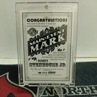 This is a rare and valuable 2009 Wheels Racing Main Event Mark Autograph On-Card featuring the talented NASCAR driver Ricky Stenhouse Jr. The card is in excellent shape and has been well-maintained over the years. It is an original and licensed reprint, with all the necessary details and features for avid collectors. The card is from the Roush Fenway Racing team and is a must-have for any NASCAR fan. It is a standard size trading card and is part of the set for the 2009 season. The autograph is a bonus and adds to the overall value of the card. Don't miss this opportunity to own a piece of NASCAR history.