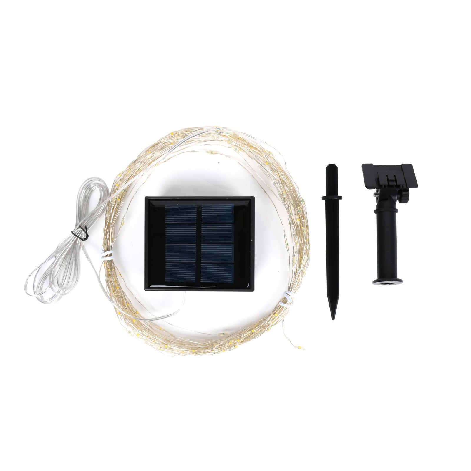 The Mainstays Solar Power 200-Count Warm White Fairy LED Wire String Lights are a great choice for your garden decoration. The extra-long & vibrant solar-powered fairy lights comes with a 72ft long string and 200 super bright led bulbs. These solar lights are made of high quality copper wire and super bright led, they are durable, flexible and bendable. You can easily make it into any shape. Lend a festive touch to various areas, ideal for decorating your house! The outdoor solar fairy lights have an on/off and mod button to function the lights. You can select 8 different modes to satisfy your diverse needs by pressing the mode button. The solar string lights are equipped with 800mAH capacity, rechargeable battery & energy-saving solar panel, powered by solar energy. With a built-in sensor, the fairy string lights will light up automatically at night and turn off during the day, working up to 8 hours after fully charged. If you need to make it light during the day, just turn ON and cover the solar panel preventing sunlight from reaching it. Mainstays Solar Power 200-Count Warm White Fairy LED Wire Lights Solar power, energy efficiency, zero fee; 72ft long string and 200 super bright led; 360° lighting angle & 180° adjustable solar panel; Durable, flexible and bendable copper; 8 different modes to satisfy your diverse needs; 800mAh rechargeable Ni-MH battery included; Built-in sensor with light control; work up to 8 hours after fully charged.