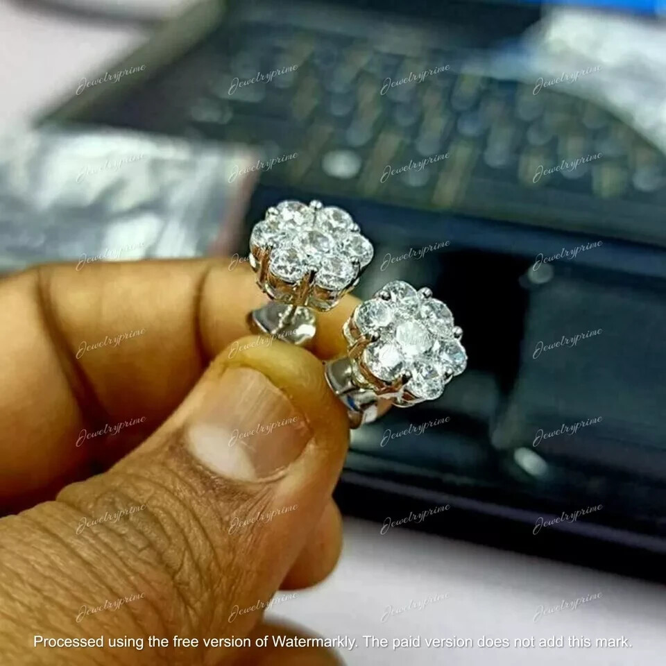 2Ct Lab-Created Round Diamond Solitaire Push Back Earrings in 14K White Gold