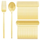 ELEGANT & DURABLE: These gold plastic spoons and forks set look like real metal flatware, bringing elegance to your dining table. These gold plastic silverware are well crafted and structurally sturdy. VALUE PACKAGING:These gold disposable spoons and forks include 100 golden plastic forks and 100 golden plastic spoons, suitable for your gatherings and daily use.These gold disposable cutlery are suitable for use in birthdays, parties, banquets, weddings, and other occasions. PREMIUM MATERIAL:Gold plastic flatware are made of 100% food , BPA free, and durable plastic, with smooth edges and bright colors. Gold plastic utensils will not scratch or easily break, ensuring a safe and enjoyable dining experience for you and your guests! DISPOSABLE & EASY TO CLEAN: These gold plastic silverware heavy duty are disposable, and after the party, you can throw them away directly to save your time. But these gold plastic flatware can also be reused, as long as you clean them after use. REASSURING AFTER-SALES SERVICE: Customer satisfaction is our greatest pursuit. If you have any questions about our Heavey duty plastic utensils sets or any suggestions for you can us, we serve you religiously.