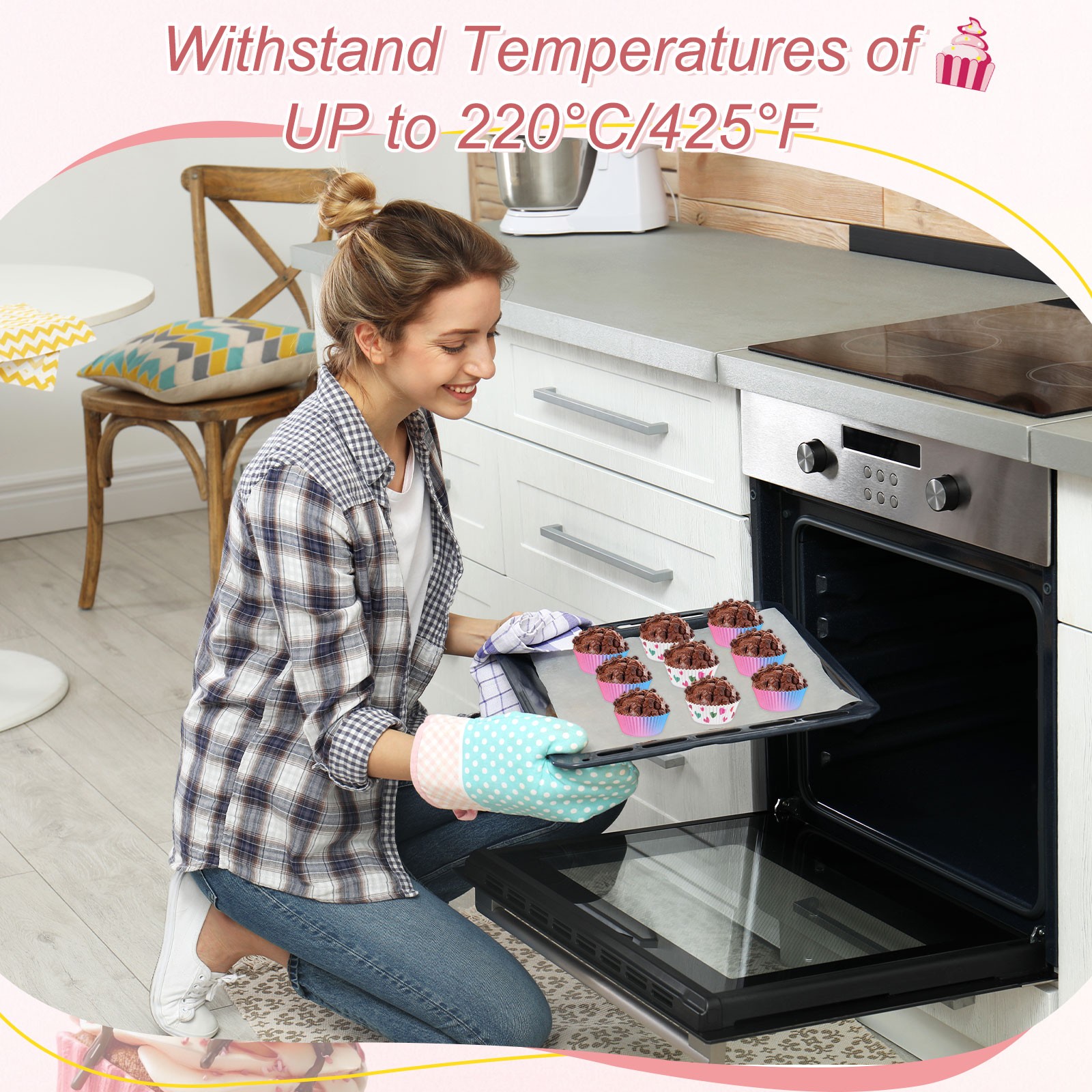 200-Pack Pink-Red Gradient Cupcake Liners for Baking & Parties