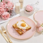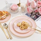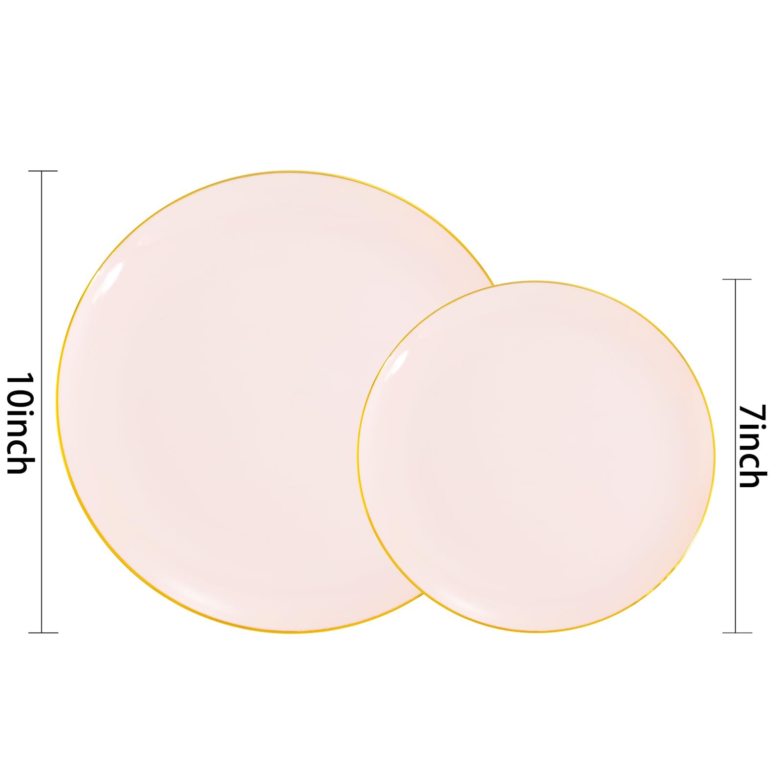 pink plastic plates, a light luxury choice for party aesthetics. The 200-piece value set (100 dinner plates + 100 dessert plates) can easily meet the needs of 100 guests. They are lightweight, shatter-resistant and reusable. This pink and gold disposable plates says goodbye to the worries of soft paper plates and fragile ceramics. Whether it is a wedding, birthday party or garden brunch, heavy-duty pink with gold rim plates can be transformed into a table art, and it can be matched with the same series of tableware to create a dreamy theme setting. VALUE PACKAGE: pink plates contain 100 pink dinner plates,100 pink dessert plates. These pink plastic plates are enough to hold a wonderful party for 100 guests! ELEGANT AESTHETIC:The excellent pink disposable plates are finely crafted with smooth lines and a delicate gold color. They can be easily transformed from pink and gold plates for small desserts to a dinner plates for a hearty main course. Our pink and gold disposable plates are lightweight and durable, with a luxurious look, stylish and convenient. SUITABLE FOR ANY OCCASION: Our high quality pink and gold plastic plates are perfect for garden parties, weddings, casual brunches and other parties. The classic pink party plates can add a touch of atmosphere to your party. PERFECT CHOICE: pink disposable plates will not bend as easily as paper plates, nor break as easily as ceramic plates. The best choice for your party. SAFE AND DURABLE: Our pink plastic plates are made of high-quality plastic, which is sturdy and durable. The pink and gold plates will not break and wear out during use. Remarkable plastic pink plates for party can withstand the weight of food and will not leak.