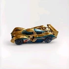 The product is a 2010 Hot Wheels 24 Ours diecast race car in gold and blue colors. It belongs to the Hot Wheels Racing series and features a car model. Made of diecast material, this Hot Wheels car is part of the Cars character family, making it a collectible item for fans of diecast vehicles.