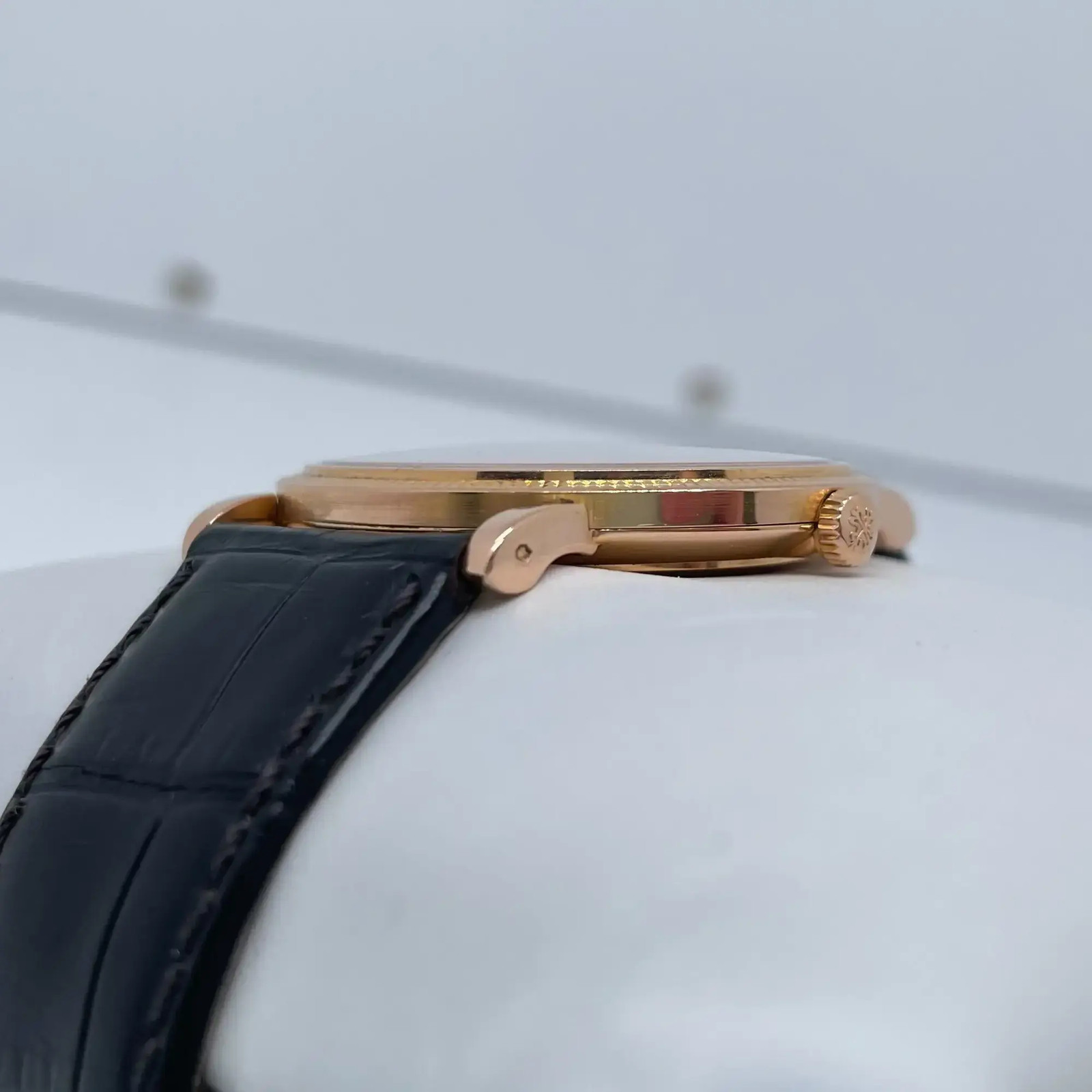 Very good pre-owned condition. Clean dial and hands. Calibrated timekeeping. Signs of wear, cracks on the inner side of the strap. Original box and papers are not included. Backed by a 1-year warranty and a 30-day return window. 2010's Patek Philippe 5119R-001 Calatrava 36mm 18K Rose Gold Manual Wind Watch Description Very good pre-owned condition. Clean dial and hands. Calibrated timekeeping. Signs of wear, cracks on the inner side of the strap. Original box and papers are not included. Backed by a 1-year warranty and a 30-day return window. Ships from Address 608 5th Ave, STE 408 - New York New York, 10020 Phone 16465368182 Condition Excellent Good Fair Poor Very good pre-owned condition. Clean dial and hands. Calibrated timekeeping. Signs of wear, cracks on the inner side of the strap. Original box and papers are not included. Backed by a 1-year warranty and a 30-day return window. Highlights Weight 51.7g Case Size 36 mm Wrist Fit 7 inches Box No Papers No SKU 044680 General Info Brand Patek Philippe Type Wristwatch Department Men Model Number 5119R-001 Country/Region of Manufacture Switzerland Style Luxury Model Patek Philippe Calatrava Vintage No Features/Other Details Year Manufactured 2010-2019 Customized No Handedness Right With Original Packaging No With Booklet No With Papers No SKU 044680 Features 12 Hour Dial, PushPull Crown, Small Seconds Subdial, Splash Proof, Swiss Made, Swiss Movement, Water-Resistant, Fixed Bezel, Sapphire Crystal Band/Bracelet Details Band Color Black Band Material Leather Max Wrist Size 7 inches Closure Buckle Band Type Two-Piece Strap Band Width 16 mm Lug Width 20 mm Wrist Fit 7 inches Case Details Case Material Rose Gold Case Color Rose-Gold Water Resistance 30 m (3 ATM) Watch Shape Round Caseback Exhibition Case Finish Polished Case Size 36 mm Case Thickness 8 mm Bezel Details Bezel Type 12-Hour, Fixed Bezel Color Rose Gold Display Dial Color White Display Analog Indices Roman Numerals Movement Movement Manual Number of Jewels 18 Jewels Movement Caliber Patek Philippe Calibre 215 PS Shipping Warranty Return Policy FAQ All in stock items are shipped within one business day. Same day shipping is available upon request. Due to insurance purposes, all packages are shipped with a tracking number and signature is required. We do not ship to PO Boxes. Import duties, taxes, and charges are not included in the item price or shipping cost. These charges are the buyer's responsibility. Please check with your country's customs office to determine what these additional costs will be, prior to bidding or buying. All watches sold by Luxxwatches are covered with in-house warranty for a period of Watches that lose time, gain time, do not change day or date, or have any other signs of not working properly will be serviced under our warranty program.The Luxxwatches warranty does not cover any damage resulting from water damage or physical harm. Additionally, the warranty does not cover polish for the watch case, any damage to crystal, band, bezel, straps, screws, crown/stem, finishes, clasps/buckles which are a result of normal wear and tear. Any lost parts of the watch, including stones, is not covered with the warranty. Any damage incurred as a result of exceeding the limitations of the watch manufacturer’s water resistance guidelines will not be covered with the warranty. Any third-party repairs, outside modifications or customizations will void the warranty. All the items purchased from Luxxwatches are covered with a 30-day money back guarantee. If you are not fully satisfied with your purchase, you may exchange or return your item for a refund within 30 days of first receiving your item. Item must be in the same condition as it was received, and include all original booklets, box & packaging. Any signs of wear, water damage, or altering will result in refusal of your return.Special order items, such as items we do not have in our warehouse and are specially ordered from our distributor or items that have been customized, are non-returnable.We offer free returns on eligible items, please contact us for the return shipping label. How to start an automatic watch? It’s very important to wind an automatic watch properly, prior to its use. The initial wind provided may only last a short while, making the watch appear defective once it stops ticking. To ensure your watch functions to the fullest of its capabilities, wait for it to stop and then wind the watch counter-clockwise 15-20 times. Next, push the crown back, screwing it down to preserve the water-resistance. *Be mindful that excessively winding the watch may cause damages to the movement, so don’t overdo it. Unlike self-winding watches, the crown doesn't need to be wound on quartz models. If it still isn’t ticking, simply bring it by for a battery replacement. Why the watch is running slow? A watch can lose time for various reasons including, but not limited to a dying battery, which will cause the second-hand to begin jumping across several seconds at once instead of passing each individually, magnetization, causing tension between small parts within the movement and natural friction from the watch being worn. If the watch is a mechanical model (Automatic or Manual-wind) this can also be a sign that the watch needs to be overhauled. How to use a chronograph? Operating a Chronograph requires using the pushers on the side of the case. The top pusher is used to start and stop the chronograph hand while the one at the bottom is used to reset it. Once the top pusher is pressed, the hand will run continuously, which you can track using the accompanying sub-dial. In order to reset the chronograph, it has to be stopped first. Otherwise the button will do nothing when pressed. How to set the date & time? Whether you have a screw or push-down crown, setting the date and time is simple. If its a screw-down, unscrew it by turning it downward, counterclockwise prior to following these steps. Pull out the crown to th