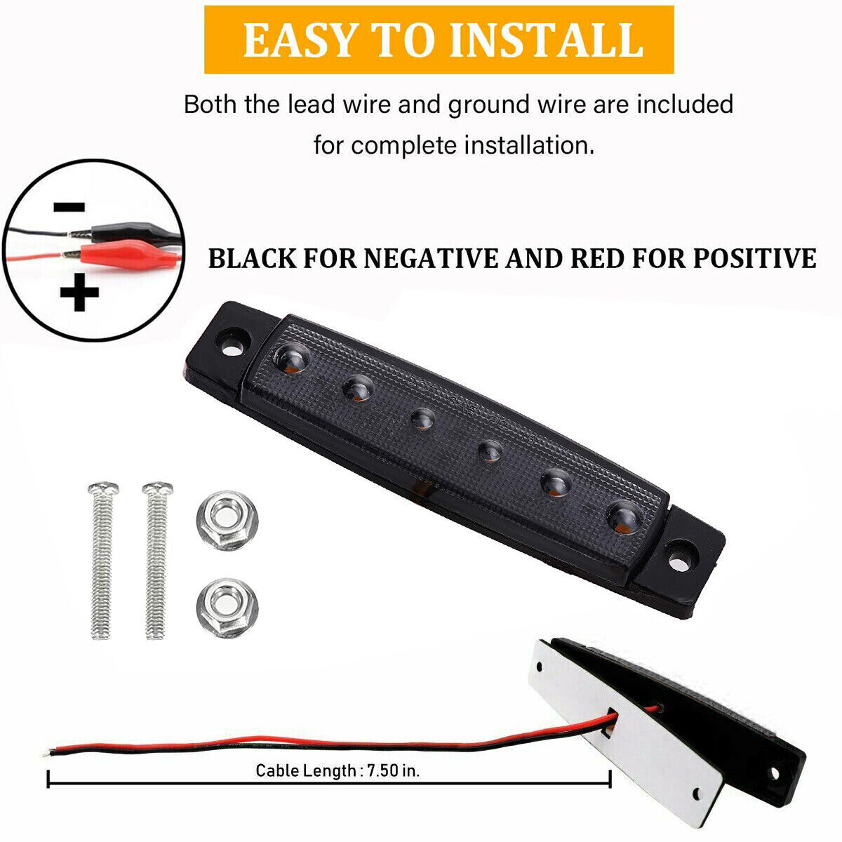 SAFE & SECURE SHOPPING 100% SATISFACTION GUARANTEED FAST SHIPPING You may also like 3.8" Smoked Red Side Marker Clearance Lights 6 LED for Truck Trailer Boat RV Product Description 3.8" Smoked Red Side Marker Clearance Lights 6 LED for Truck Trailer Boat RV Excellent Brightness: Each light comes with 6PCS high intensity 2835 SMD LED, outputs excellent bright 120LM light for perfect marker light. Awesome Seal: Decently sealed at both front lens and back wire lead. Compared with other brands, our back wire lead is added proper glue to make it completely seal without affecting the surface mount. Widely Used: Ideal for most 12V trailer, buses, trucks, trailers, lorries, RV, boat as led marker light clearance light indicator Light. Simple Installation: 2 wire connection, yellow for positive, black for negative. 3 steps of light mounting: Mark and drill holes according to the foam tape base provided; Peel and stick the foam tape to the light; Run through the wire lead to the center hole and use bolts and nuts to fix 2 sides. Center hole might not be necessary if use some washer under the foam tape base when fixing the two sides. Package Include: Red side marker light, include a hardware pack and foam tape base. Description: Item Type: Tail Light Assembly Special Features: Side marker &clearance lamp Material: ABS Light Source: LED LED quantity: 6 x light emitting diodes Lights Color: Red Size: 3.74 x0.79 x 0.32 in/ 95 x 20 x 8 mm Holes spacer: 3.26 in/83 mm Lead cable length: 7.60 in /193mm Voltage: DC 12V Suitable for most of buses, trucks, trailers, and lorries etc. Package Included: Side Marker Lights(Smoked Red) Screws Contact Us Feedback Contact Us Our working time:Beijing time:Monday to Saturday 9:00 am to 6:00 pm. ✿If you have any questions, please feel free to email our service specialists 24 Hours a Day, 7 Days a Week. ✿We greatly appreciate your POSITIVE feedback. Please do NOT leave negative feedback without asking for help. ✿Our aim is to provide Top Level Customer Service, so we will try our best to solve any problem. ✿Please DON’T leave negative or neutral feedback if you haven’t received item in 30 days, because we have mentioned the shipping time repeatedly. If you have any questions, please do not hesitate to contact to us . We will do our best to solve your problem. Feedback .✿If you are dissatisfied for any reason, please donn't leave negative/neutral feedback without asking. We work hard to make sure EVERY CUSTOMER 100% SATISFIED and resolve any problem for you. We always leave positive feedback to all our customers. .✿We will leave positive feedback once receiving your payment, if you are satisfied with the product you received, please leave us a positive feedback and 5 scores of DSR ✿We will arrange shipping for you within 48 Hours after payment cleared except the holidays. Copyright © 2022 Tongtool