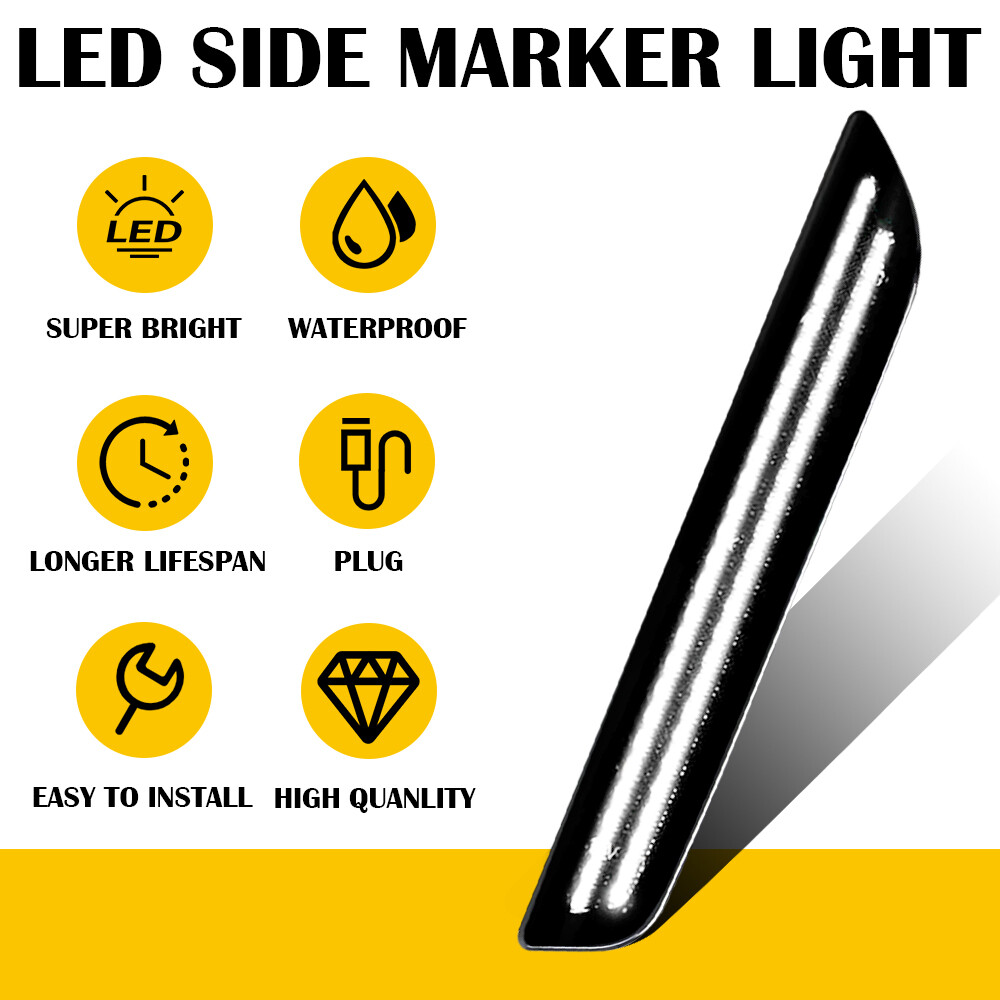 These LED side marker lights are a fantastic upgrade for any 2010-2014 Mustang! The smoked white lenses give a sleek, sporty look while the bright LEDs improve visibility. Installation was quick and easy—no wiring modifications needed. The ABS plastic feels durable, and the fitment is perfect. They really make the car stand out, especially at night. Highly recommend for anyone wanting a clean, modern touch!